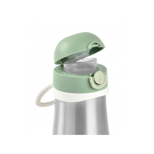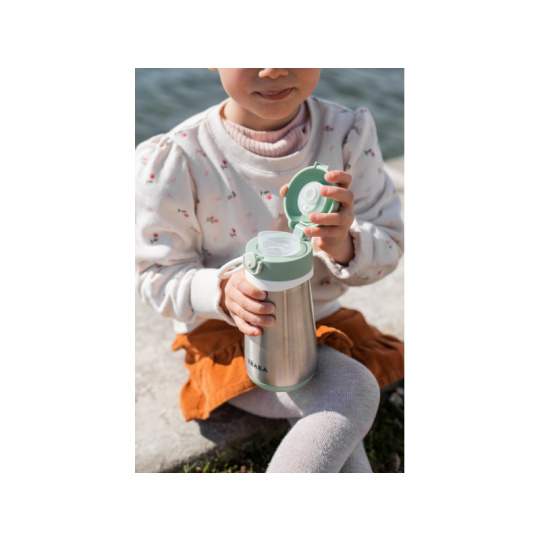 Termoizolační hrnek Beaba vyrobený z vysoce kvalitní dvoustěnné oceli udrží nápoj déle teplý nebo studený. Je tak vhodný pro zahřátí teplým nápojem během procházek v zimě a naopak pro osvěžení chladným nápojem během horkých letních dní. Náústek umožňuje pití podobně jako z klasického hrnku. Zaklapávací víčko s pojistkou chrání obsah a zajišťuje hygienu při přenášení. Odnímatelné poutko usnadňuje přenášení. Hrnek je vyroben z vysoce kvalitní nerezové oceli, která je odolná proti korozi, poškrábání a jakémukoli poškození. Nerezová ocel navíc neabsorbuje příchutě a pachy. Jednotlivé součásti hrnku lze rozebrat pro snadné mytí. Objem: 350 ml Rozměry: 100 x 70 x 170 mm Hmotnost: 240 g Neobsahuje BPA, BPF, BPS, PVC ani ftaláty. Vhodné pro děti od 18 měsíců.