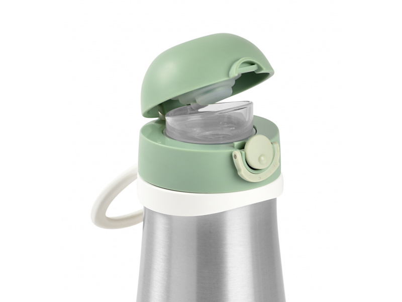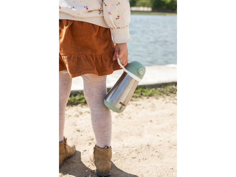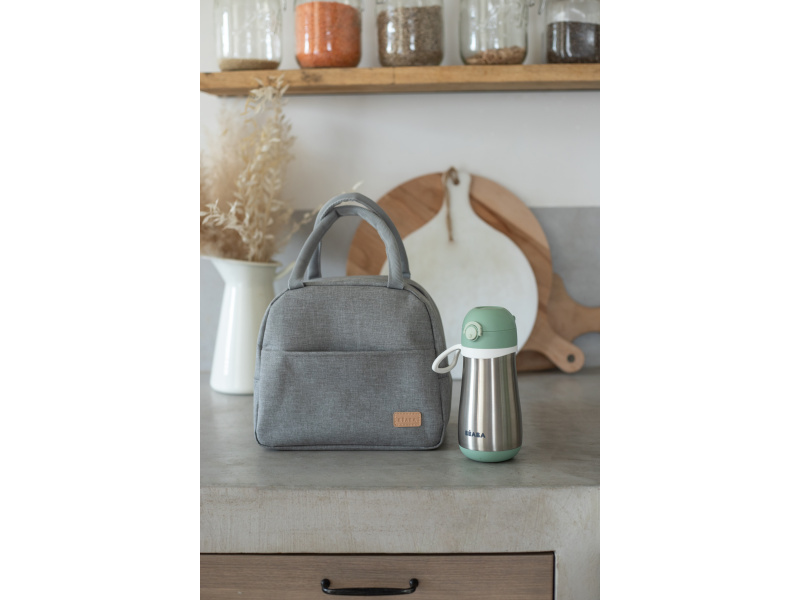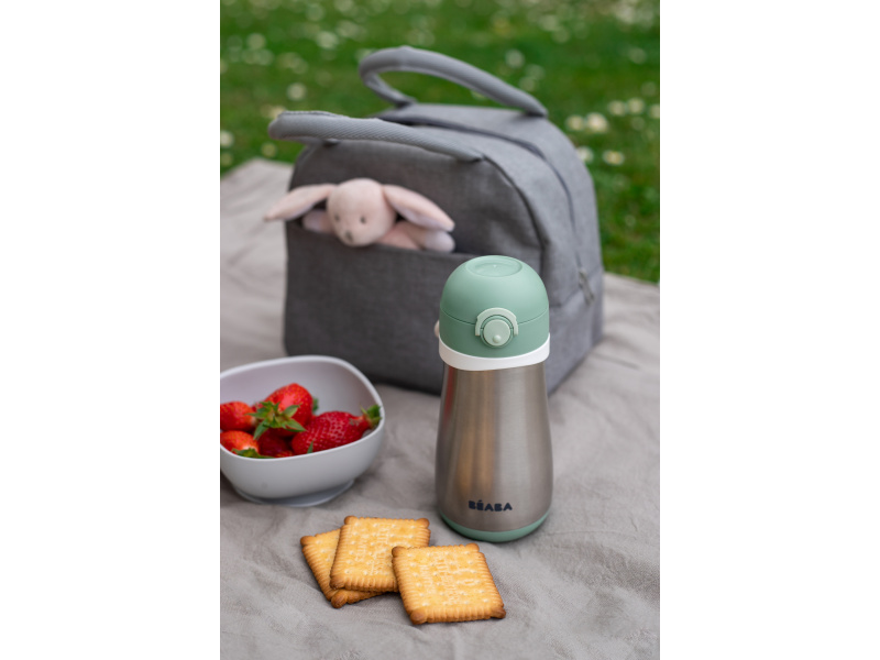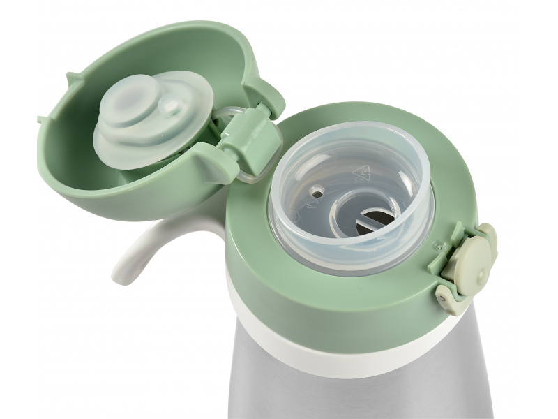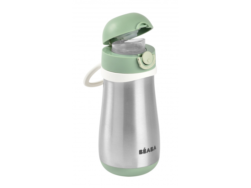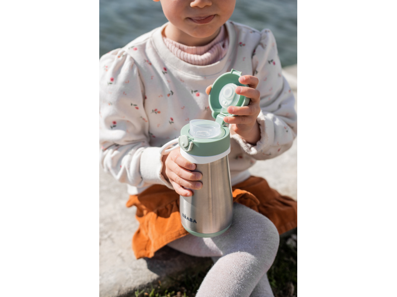 Termoizolační hrnek Beaba vyrobený z vysoce kvalitní dvoustěnné oceli udrží nápoj déle teplý nebo studený. Je tak vhodný pro zahřátí teplým nápojem během procházek v zimě a naopak pro osvěžení chladným nápojem během horkých letních dní. Náústek umožňuje pití podobně jako z klasického hrnku. Zaklapávací víčko s pojistkou chrání obsah a zajišťuje hygienu při přenášení. Odnímatelné poutko usnadňuje přenášení. Hrnek je vyroben z vysoce kvalitní nerezové oceli, která je odolná proti korozi, poškrábání a jakémukoli poškození. Nerezová ocel navíc neabsorbuje příchutě a pachy. Jednotlivé součásti hrnku lze rozebrat pro snadné mytí. Objem: 350 ml Rozměry: 100 x 70 x 170 mm Hmotnost: 240 g Neobsahuje BPA, BPF, BPS, PVC ani ftaláty. Vhodné pro děti od 18 měsíců.