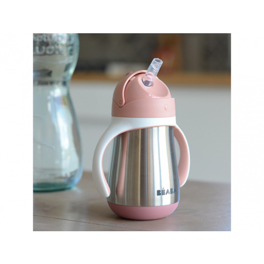 Termoizolační hrnek Beaba vyrobený z vysoce kvalitní dvoustěnné oceli udrží nápoj až 6 hodin teplý a až 7 hodin studený. Je tak vhodný pro zahřátí teplým nápojem během procházek v zimě a naopak pro osvěžení chladným nápojem během horkých letních dní. Zaklapávací silikonové brčko s víčkem je zárukou bezpečného přenášení v tašce. Ventil v brčku navíc brání vylití obsahu lahvičky při převržení i když víčko není zaklapnuté. Držadla usnadňují dítěti držení hrnku. Hrnek je vyroben z vysoce kvalitní nerezové oceli, která je odolná proti korozi, poškrábání a jakémukoli poškození. Nerezová ocel navíc neabsorbuje příchutě a pachy. Jednotlivé součásti hrnku lze rozebrat pro snadné mytí. Součástí balení je i dlouhý úzký kartáček pro čištění silikonového brčka. Objem: 250 ml Rozměry: 120 x 74 x 155 mm Hmotnost: 210 g Neobsahuje BPA, BPF, BPS, PVC ani ftaláty. Vhodné pro děti od 8 měsíců.