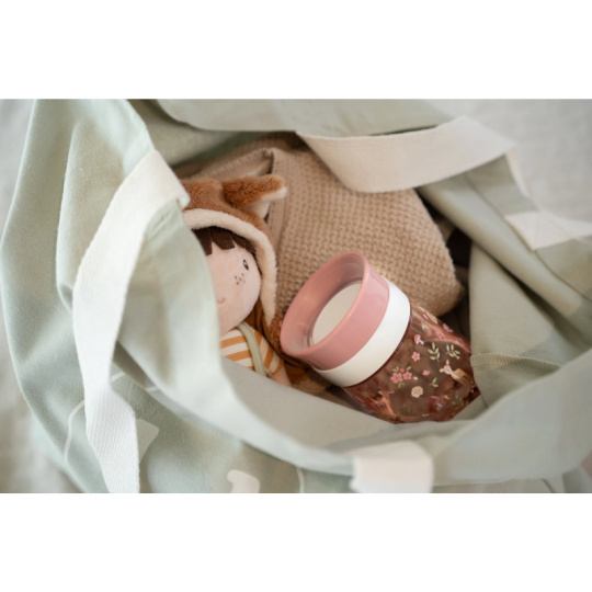 Trénovací hrnek je ideální pro děti, které se učí pít z klasického hrnku. Silikonové víčko se systémem 360° umožňuje pít z kteréhokoli místa po obvodu hrnku bez rizika rozlití. Tekutina teče z hrnku po naklonění k ústům dítěte kontrolovaným způsobem, takže dítě na sebe při pití obsah hnku nevylije. Když pít přestane, hrnek se díky speciální membráně automaticky uzavře. Hrnek s krásným potiskem je součástí designové kolekce hraček a doplňků pro děti Little Dutch Fairy Garden, inspirované životem na zahradě. Hrnek je snadné rozebrat a umýt v myčce. Materiál: PP, silikon, Tritan Objem: 300 ml Vhodné pro děti od 9 měsíců.