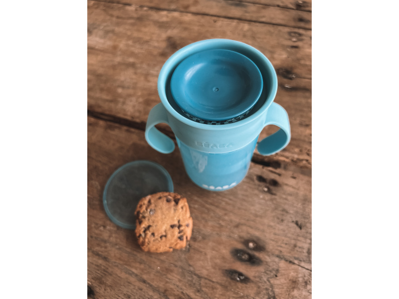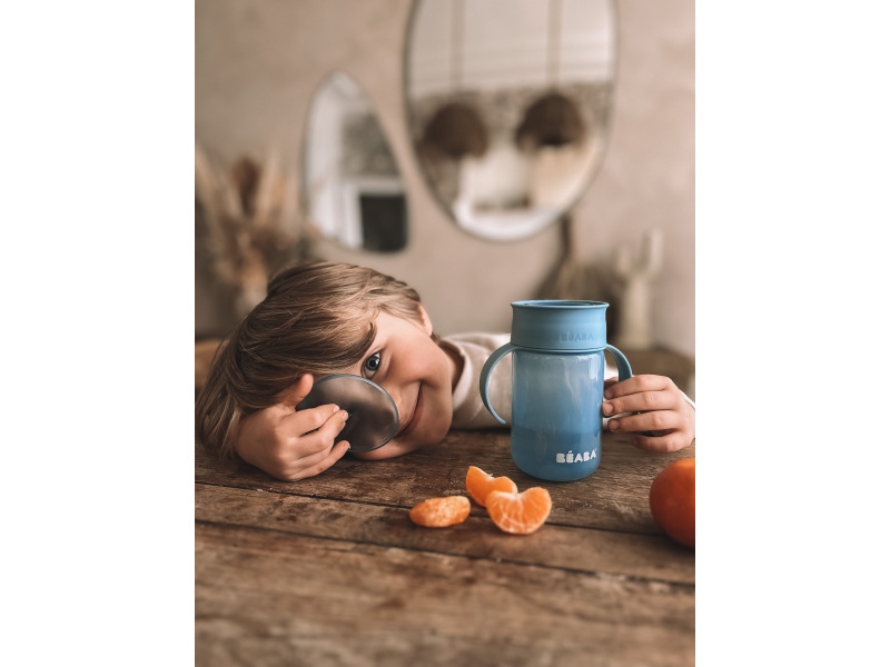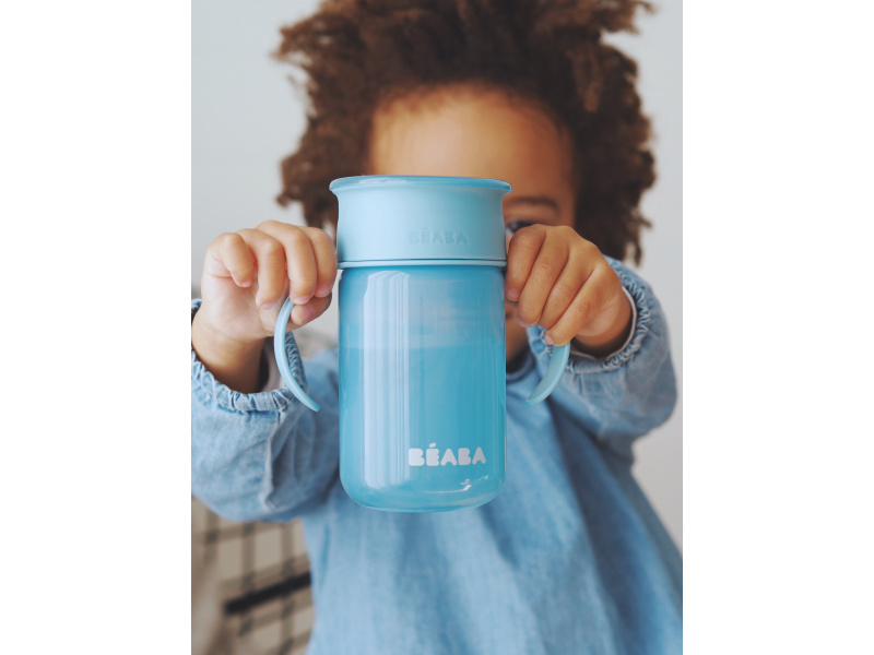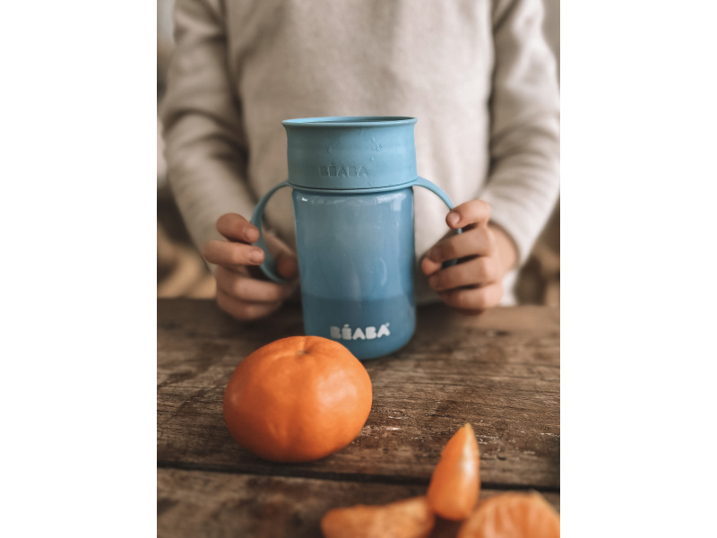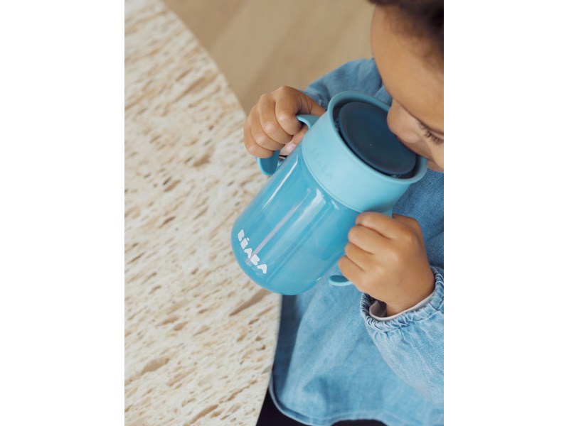 Originální hrnek pro děti, které se učí pít z klasického hrnku. Membrána se systémem 360° umožňuje pít z kteréhokoli místa po obvodu hrnku bez rizika rozlití obsahu - tekutina teče z hrnku pouze tehdy, když dítě přitiskne rty na okraj hrnku. Odnímatelné rukojeti usnadňují držení hrnku. Obsah hrnku při přenášení chrání odnímatelné víčko. Hrnek se snadno rozloží na jednotlivé díly, které je možné mýt v myčce. Vhodné pro děti od 12 měsíců.