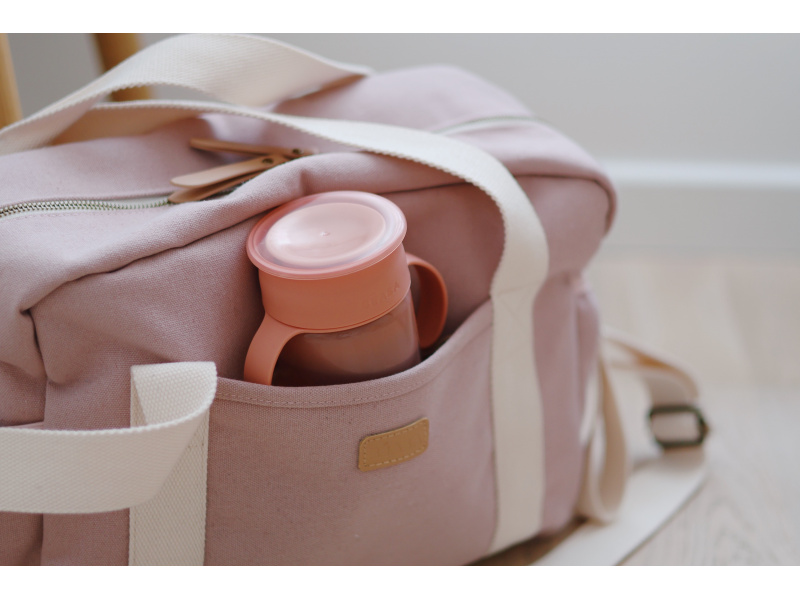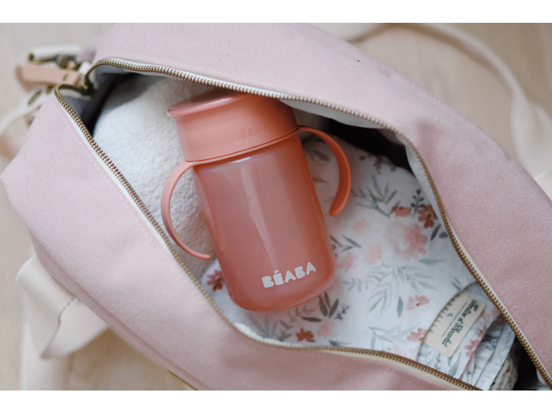 Originální hrnek pro děti, které se učí pít z klasického hrnku. Membrána se systémem 360° umožňuje pít z kteréhokoli místa po obvodu hrnku bez rizika rozlití obsahu - tekutina teče z hrnku pouze tehdy, když dítě přitiskne rty na okraj hrnku. Odnímatelné rukojeti usnadňují držení hrnku. Obsah hrnku při přenášení chrání odnímatelné víčko. Hrnek se snadno rozloží na jednotlivé díly, které je možné mýt v myčce. Vhodné pro děti od 12 měsíců.