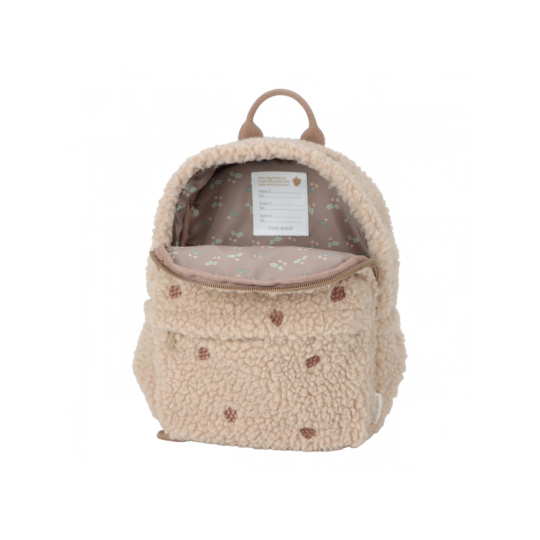 Roztomilý dětský batůžek z měkkého plyšového materiálu s květinovou výšivkou je ideálním doplňkem na výlety do přírody i procházky městem. Batůžek má nastavitelné ramenní popruhy a hrudní pás pro příjemné nošení. Držadlo umožňuje přenášení v ruce. Batůžek je vybaven vnější kapsou na zip pro uložení drobností a vnitřní prostor s kapsou, elastickým držákem na pití a jmenovkou. Batůžek je součástí designové kolekce hraček a doplňků pro děti Little Dutch Forest Friends, inspirované životem v lese. Rozměry: 29 x 22,5 x 12 cm