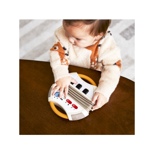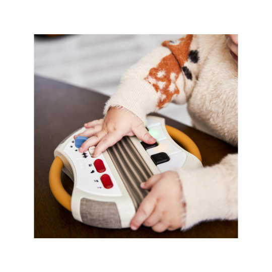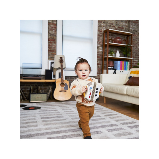 Hudební akordeon Tiny Love je originální hračka, která zábavným způsobem pomáhá rozvíjet emoce a kreativitu vašeho dítěte. Hračka nabízí 7 rockových melodií a umožňuje dítěti poslouchat hudbu nebo vytvářet melodie vlastní. Každá ze sedmi kláves produkuje jiné zvuky, navíc lze přepínat mezi klasickými nebo elektronickými zvuky. Barevná LED světla pomáhají rozlišit klávesy. Otevírání a zavírání harmoniky rovněž vytváří zvuky. Hračka s kvalitním reproduktorem je vybavena možností vypnutí a nabízí 3 úrovně hlasitosti. Hudební akordeon je vhodný pro samostatnou hru ale i pro hraní rodičů s dítětem. Společné hraní na akordeon, zpívání a tancování je je skvělý způsob, jak si užít vzácný čas s vaším dítětem! Díky kompaktním rozměrům a držadlům je hračka vhodná na doma i na cesty. Baterie 2xAA nejsou součástí výrobku. Rozměry: 18 x 18 x 5 cm Vhodné pro děti od 12 měsíců.