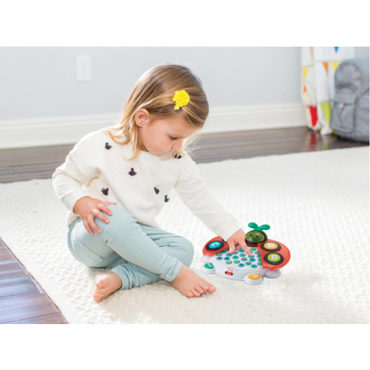 Roztomilá interaktivní beruška, která děti zábavnou formou učí 5 barev a celou abecedu. Stačí otevřít křídla a objeví se všechna písmenka. Hračka dětem představuje názvy písmen, říká slova, která na dané písmeno začínají, a navíc je zapojuje do hry pomocí „hledej a najdi“ kvízů – ptá se, aby děti našly konkrétní písmena nebo barvy. Pro ještě větší zábavu berušce svítí obličej. Beruška nabízí 4 písničky, 93 slov a frází a 14 zvukových efektů, které pomáhají udržet pozornost dítěte. Hračka nabízí dva režimy hraní dle věku dítěte. Pro nejmenší děti jsou vhodná velká tlačítka ABCD, větším dětem stačí otevřít křídla berušky a zpřístupnit tak kompletní abecedu. Všechny mluvené části jsou v angličtině. Vyměnitelné baterie 2xAA 1,5V součástí výrobku. Vhodné pro děti od 6 do 36 měsíců.
