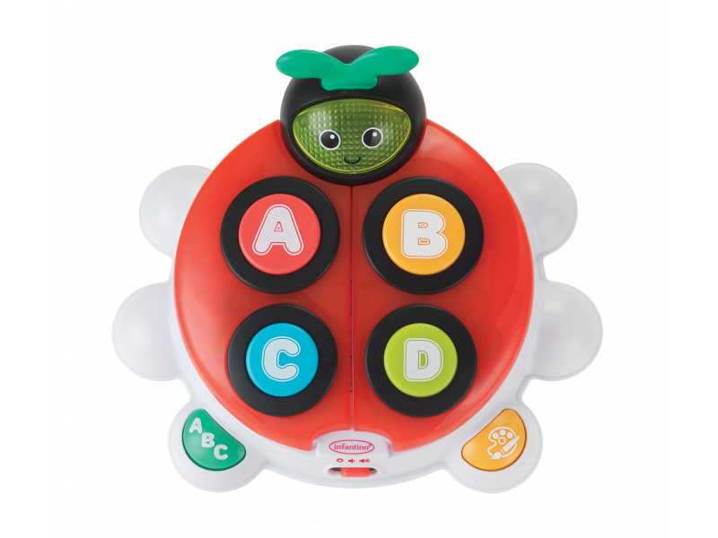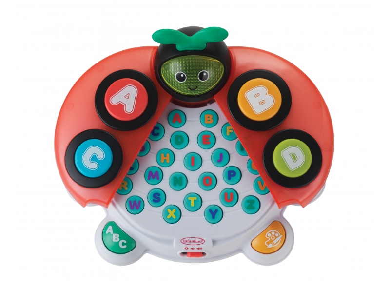 Roztomilá interaktivní beruška, která děti zábavnou formou učí 5 barev a celou abecedu. Stačí otevřít křídla a objeví se všechna písmenka. Hračka dětem představuje názvy písmen, říká slova, která na dané písmeno začínají, a navíc je zapojuje do hry pomocí „hledej a najdi“ kvízů – ptá se, aby děti našly konkrétní písmena nebo barvy. Pro ještě větší zábavu berušce svítí obličej. Beruška nabízí 4 písničky, 93 slov a frází a 14 zvukových efektů, které pomáhají udržet pozornost dítěte. Hračka nabízí dva režimy hraní dle věku dítěte. Pro nejmenší děti jsou vhodná velká tlačítka ABCD, větším dětem stačí otevřít křídla berušky a zpřístupnit tak kompletní abecedu. Všechny mluvené části jsou v angličtině. Vyměnitelné baterie 2xAA 1,5V součástí výrobku. Vhodné pro děti od 6 do 36 měsíců.