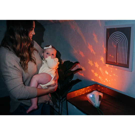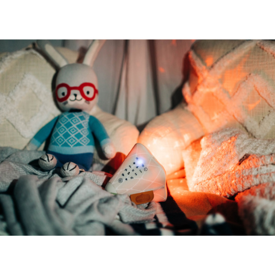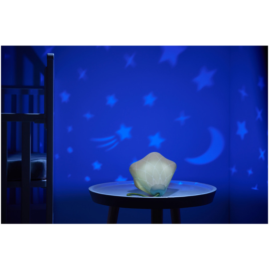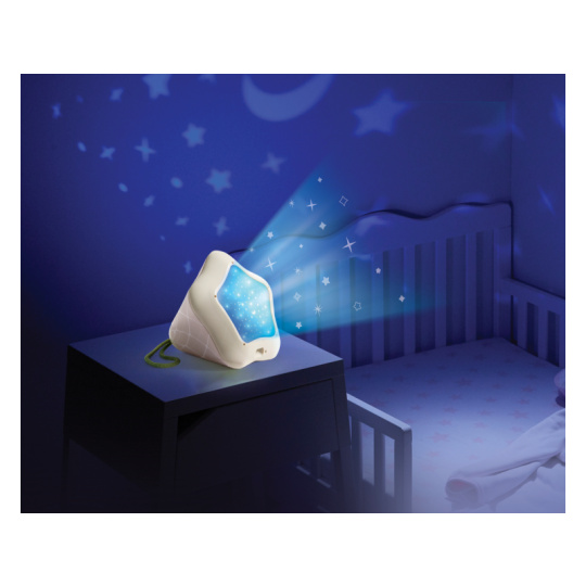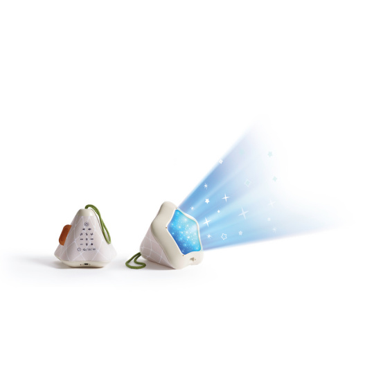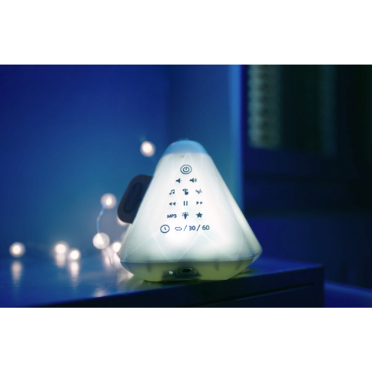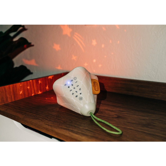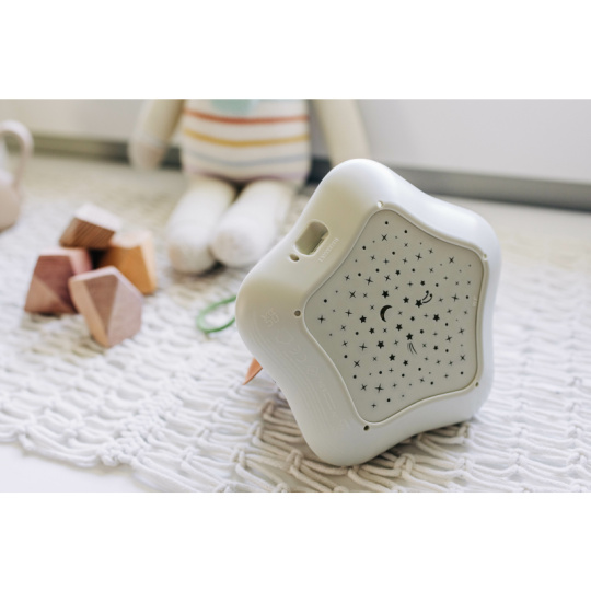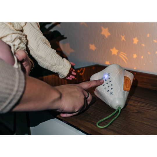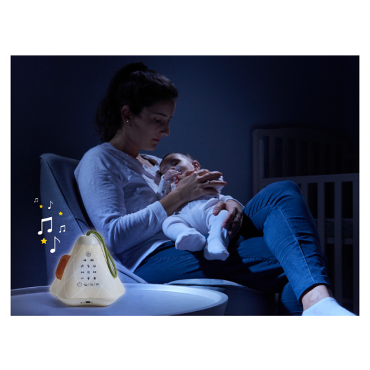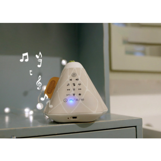 Hudební box s projekcí pomůže zklidnit a utišit vaše dítě před spaním. Nabízí několik variant použití - jako noční lampičku s jemným teplým světlem, jako projektor noční oblohy s hvězdičkami na stěnu i jako přenosnou lampičku do ruky. Senzor pláče umožňuje automatické rozsvícení, když dítě začne v noci plakat. Hudební box nabízí 17 různých uklidňujících melodií, 5 typů bílého šumu a a jedinečný utišující zvuk. Zabudovaný MP3 přehrávač umožňuje rodiči vybrat a přehrávat jakokoli další hudbu podle preferencí dítěte. Box je vybaven ovládáním hlasitosti i možností automatického vypnutí. Poutko usnadňuje přenášení boxu. Ve starším věku dítě box využije jako přenosnou lampičku i MP3 přehrávač jeho oblíbených písniček. Součástí hudebního boxu je zabudovaná dobíjecí baterie a USB kabel. Rozměry: 16,5 x 16 x 16 cm Vhodné pro děti od narození.