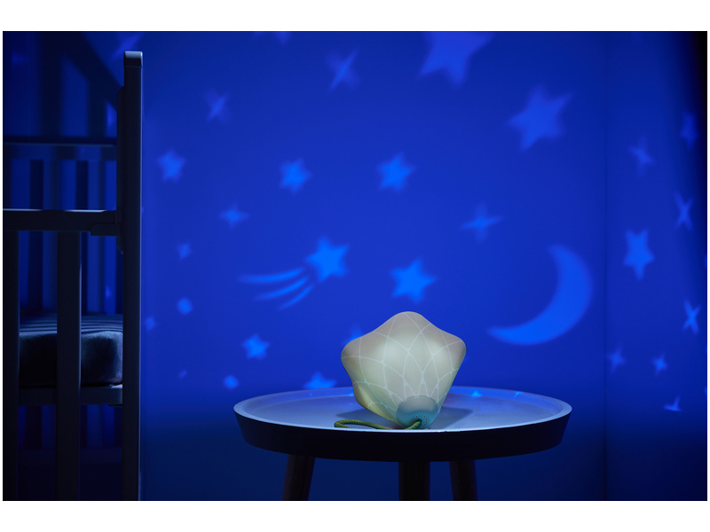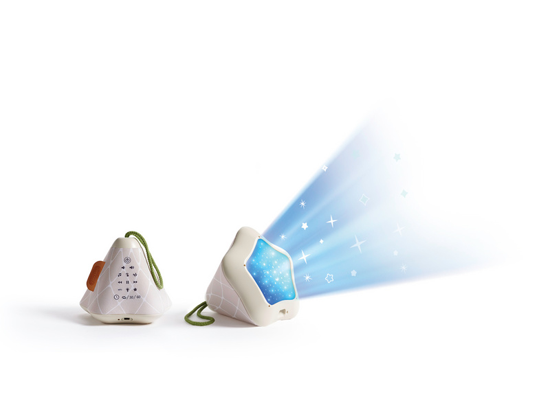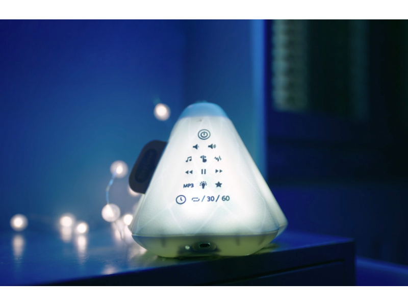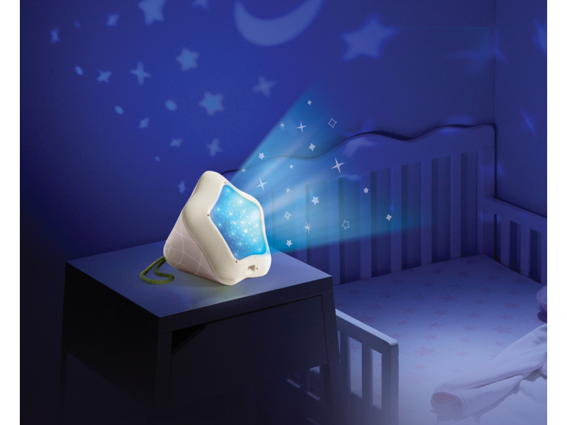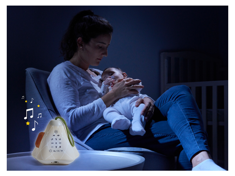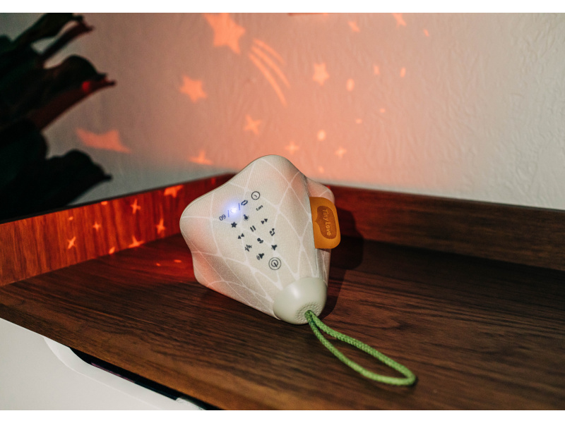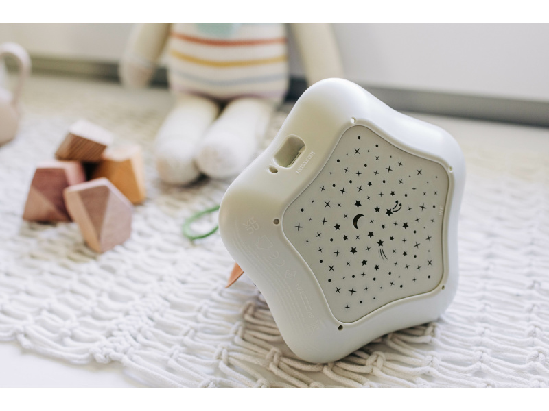 Hudební box s projekcí pomůže zklidnit a utišit vaše dítě před spaním. Nabízí několik variant použití - jako noční lampičku s jemným teplým světlem, jako projektor noční oblohy s hvězdičkami na stěnu i jako přenosnou lampičku do ruky. Senzor pláče umožňuje automatické rozsvícení, když dítě začne v noci plakat. Hudební box nabízí 17 různých uklidňujících melodií, 5 typů bílého šumu a a jedinečný utišující zvuk. Zabudovaný MP3 přehrávač umožňuje rodiči vybrat a přehrávat jakokoli další hudbu podle preferencí dítěte. Box je vybaven ovládáním hlasitosti i možností automatického vypnutí. Poutko usnadňuje přenášení boxu. Ve starším věku dítě box využije jako přenosnou lampičku i MP3 přehrávač jeho oblíbených písniček. Součástí hudebního boxu je zabudovaná dobíjecí baterie a USB kabel. Rozměry: 16,5 x 16 x 16 cm Vhodné pro děti od narození.