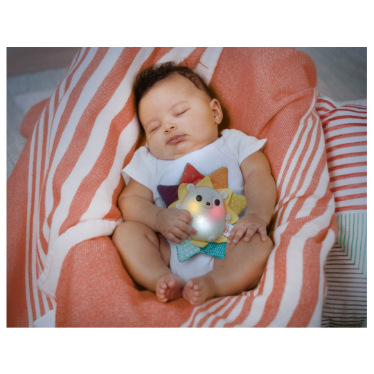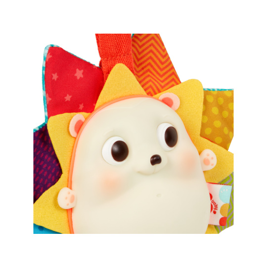 Závěsná hračka v podobě ježka zaujme dítě výraznými kontrastními barvami, magickými melodiemi a barevnými světýlky. Barevné bodliny ježka při zkoumání rukama šustí.  Hračka zabaví dítě doma i na cestách a pomáhá rozvíjet jednotlivé smysly dítěte. Rozměry: 20 x 23 x 7 cm Baterie 3x AAA jsou součástí. Vhodné pro děti od narození.