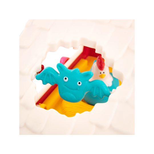 Interaktivní farma se zvířátky je tu, aby vašemu dítěti přinesla hodiny a hodiny nápadité hry! Farma nabízí spousty různých překvapivých aktivit, které budou děti postupně objevovat. Otevřete dvířka stodoly, rozsvítí se světýlka! Postavením kravičky, prasátka, ovečky nebo koníka dovnitř stodoly pustíte jednu ze čtyř melodií se zvuky jednotlivých obyvatel farmy. Vložte do otvoru ve střeše sila vedle stodoly kuličku a sledujte, jak běží dráhou dolů, až vyskočí spodními dvířky. Posunujte myšku nade dveřmi stodoly a slepička na půdě začne skákat a kvokat. Zmáčknutím veverky aktivujete hudební mišmaš. Otevřete dvířka a objeví se králíček. Vložte kuličku do kupky sena a jukne na vás krtek. Netopýr na střeše se otáčí. Hračka pomáhá rozvíjet jemnou motoriku i emoční inteligenci dítěte. Sklopná rukojeť umožňuje snadné přenášení. Baterie 4xAA jsou součástí výrobku. Rozměry: 47 x 22 x 37 cm Vhodné pro děti od 2 let.
