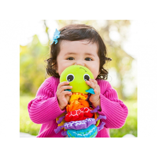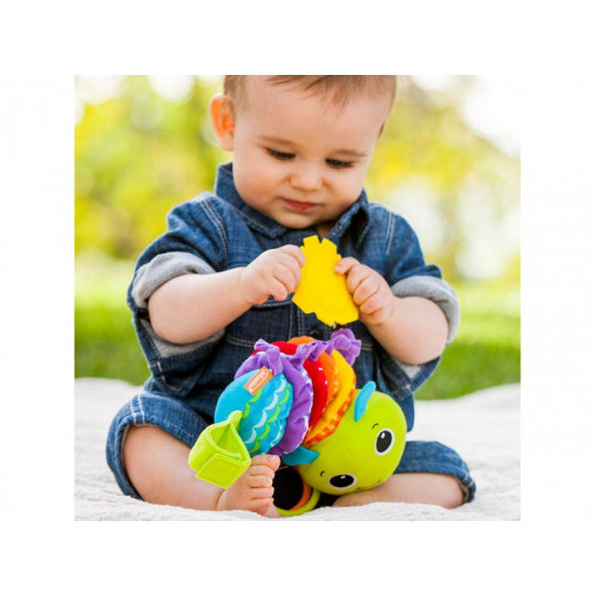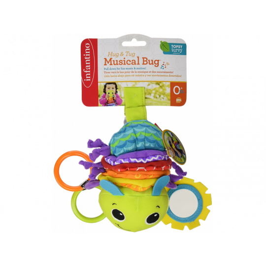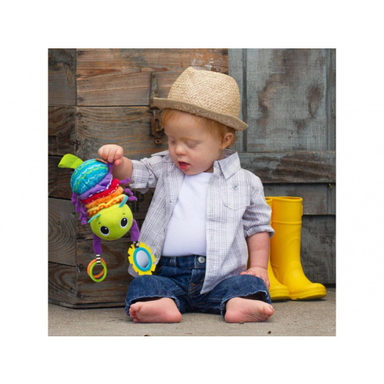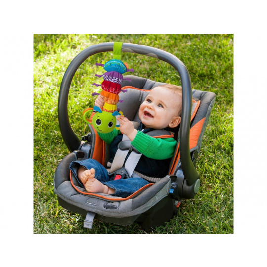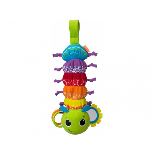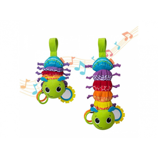 Neodolatelná housenka zabaví vaše dítě doma i na cestách! Po zatáhnutí za kroužky se tělo housenky natáhne a začne hrát příjemnou ukolébavku. Pozornost dítěte upoutá i bezpečné zrcátko a různorodé textury ke zkoumání rukama i ústy. Hračku snadno zavěsíte na kočárek či autosedačku. Vhodné pro děti od narození.