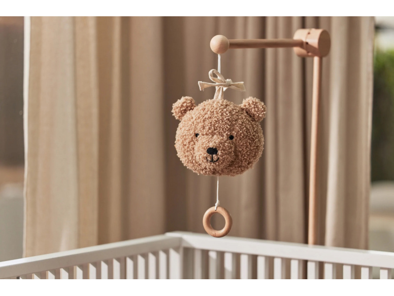 Něžný závěsný medvídek hraje po natažení za kroužek krásnou melodii "You Are My Sunshine". Hračku s pomocí textilního úchytu snadno připevníte na postýlku, autosedačku, kočárek apod. Materiál: 100% bouclé polyester, výplň 100% polyester Rozměry: délka 20 cm Vhodné pro děti od narození.