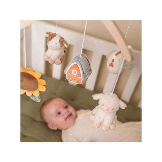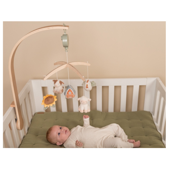 Krásný dřevěný kolotoč z kolekce hraček Little Dutch Farma hraje po natažení ukolébavku pro uklidnění vašeho miminka před spaním. Pozornost dítěte upoutá pět otáčejících se hraček v podobě zvířátek a motivů ze života na farmě. Kolotoč se snadno připevní na postýlku či ohrádku. Rozměry: 37 x 52 x 75 cm Vhodné pro děti od narození.