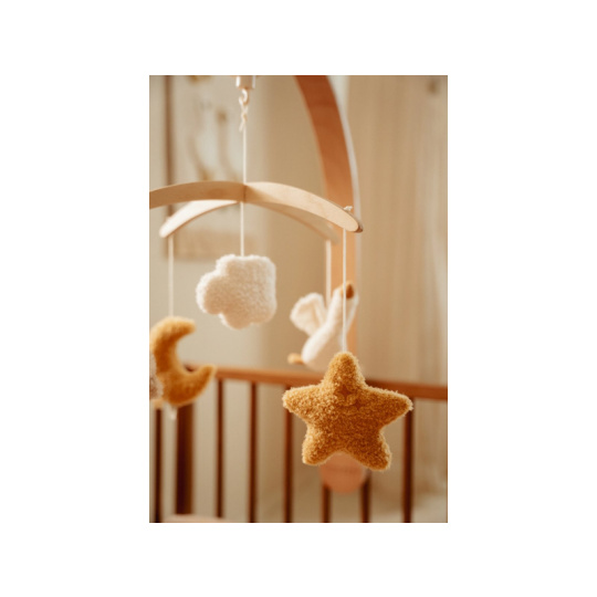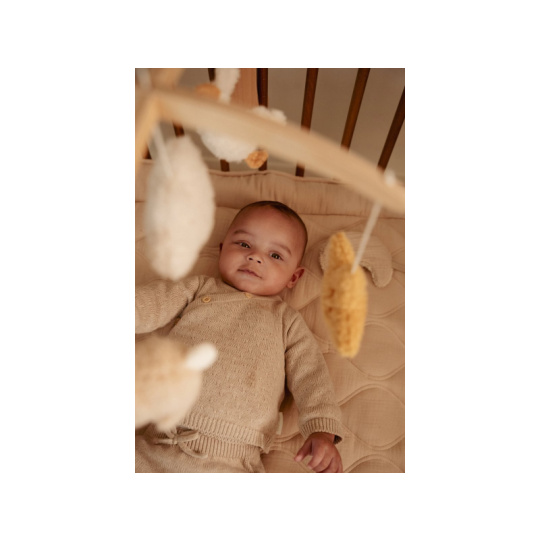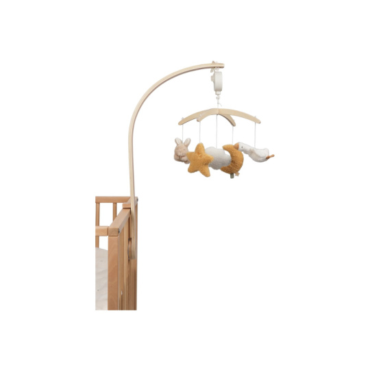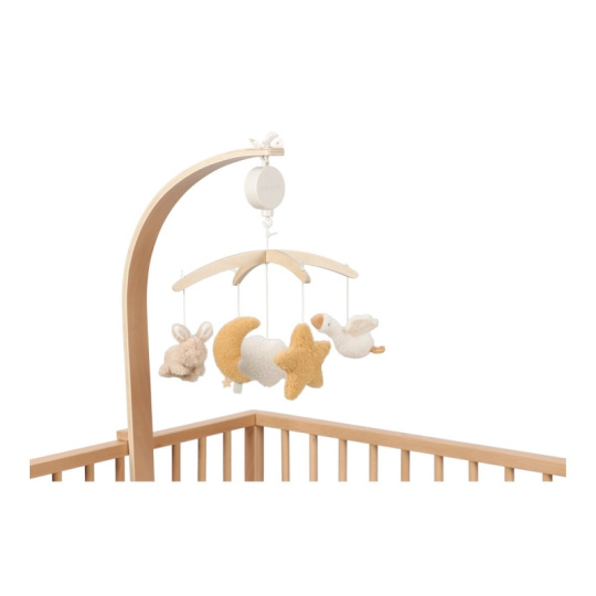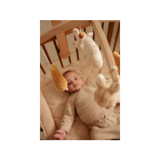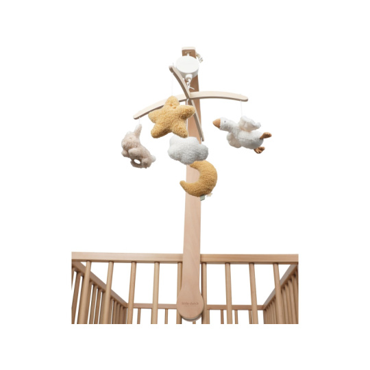Krásný dřevěný kolotoč z kolekce hraček Little Dutch Newborn Naturals hraje po natažení ukolébavku pro uklidnění vašeho miminka před spaním. Pozornost dítěte upoutá pět otáčejících se hraček v podobě králíčka, husy, hvězdičky, mráčku a měsíce. Kolotoč podporuje klidné usínání a zároveň stimuluje smyslový vývoj miminka. Kolotoč se snadno připevní na postýlku či ohrádku. Vysoce kvalitní dřevěný rám je stabilní a elegantní. Kolotoč je součástí designové kolekce hraček a doplňků Little Dutch Newborn Naturals. Vyrobeno z dřeva certifikovaného FSC. Výplň hraček je vyrobena ze 100% recyklovaného polyesteru s certifikací GRS (Global Recycled Standard). Rozměry: 37 x 52 x 75 cm Složení: dřevo, 100% polyester Odnímatelné hračky je možno prát v pračce na jemný program při 30°C. Vhodné pro děti od narození.