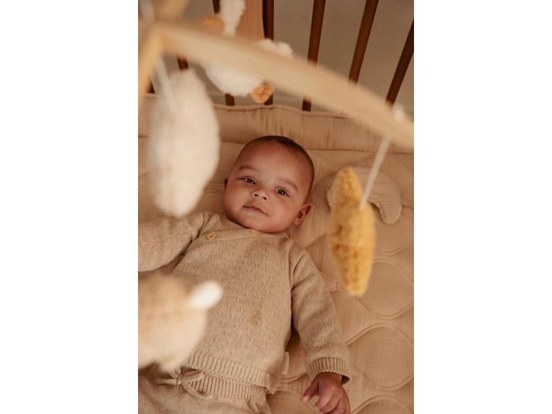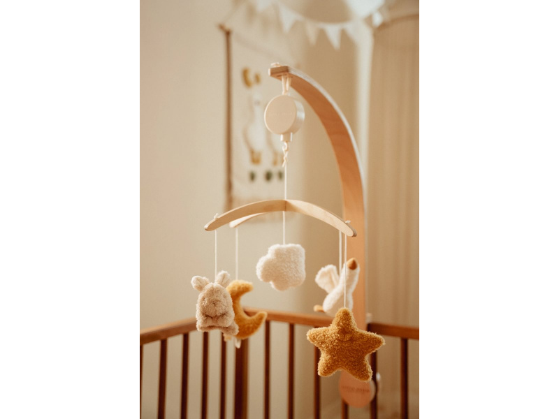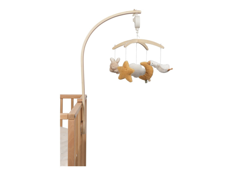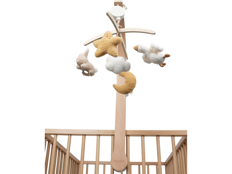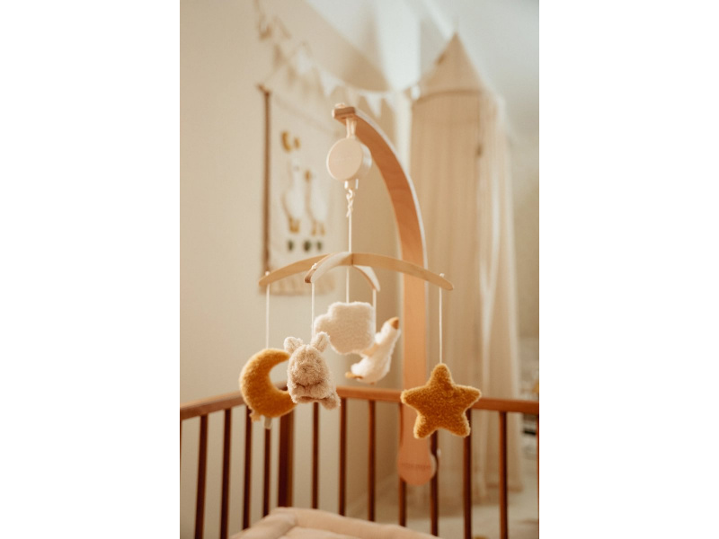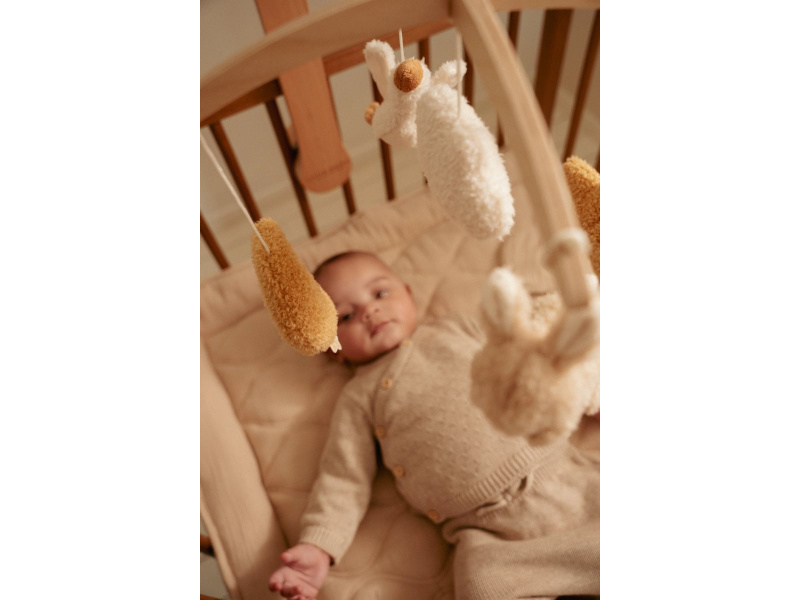 Krásný dřevěný kolotoč z kolekce hraček Little Dutch Newborn Naturals hraje po natažení ukolébavku pro uklidnění vašeho miminka před spaním. Pozornost dítěte upoutá pět otáčejících se hraček v podobě králíčka, husy, hvězdičky, mráčku a měsíce. Kolotoč podporuje klidné usínání a zároveň stimuluje smyslový vývoj miminka. Kolotoč se snadno připevní na postýlku či ohrádku. Vysoce kvalitní dřevěný rám je stabilní a elegantní. Kolotoč je součástí designové kolekce hraček a doplňků Little Dutch Newborn Naturals. Vyrobeno z dřeva certifikovaného FSC. Výplň hraček je vyrobena ze 100% recyklovaného polyesteru s certifikací GRS (Global Recycled Standard). Rozměry: 37 x 52 x 75 cm Složení: dřevo, 100% polyester Odnímatelné hračky je možno prát v pračce na jemný program při 30°C. Vhodné pro děti od narození.