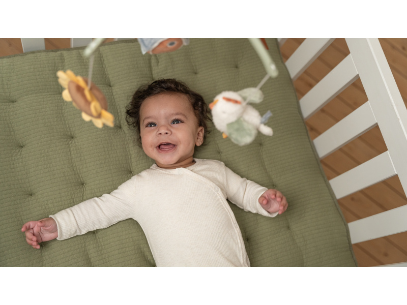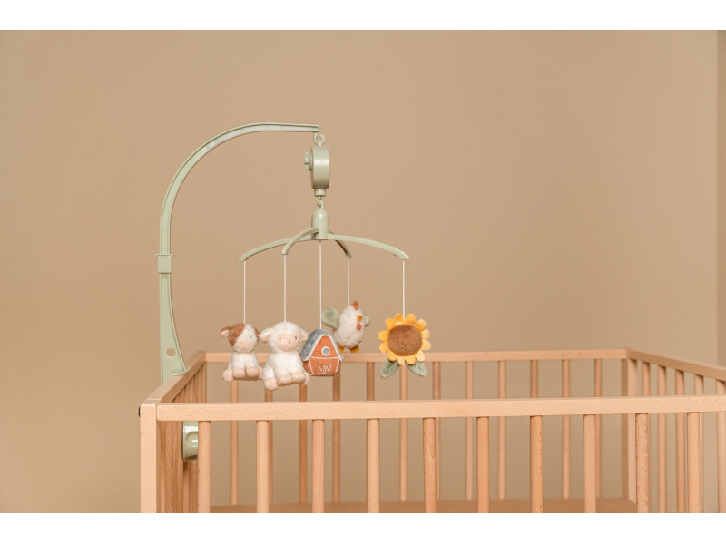 Kolotoč s natahovacím hudebním boxem hraje něžnou ukolébavku pro klidné usínání. Pozornost dítěte upoutají otáčející se plyšové hračky v podobě ovečky, slepičky, kravičky, slunečnice a domečku. Kolotoč snadno připevníte na bočnici postýlky. Kolotoč je součástí designové kolekce hraček Little Dutch Farma. Rozměry: 52 x 75 x 37 cm Vhodné pro děti od narození do 6 měsíců.