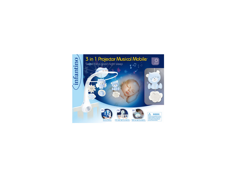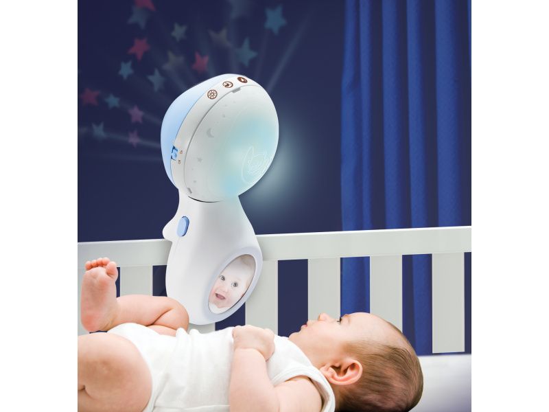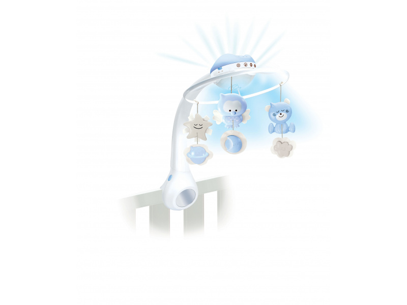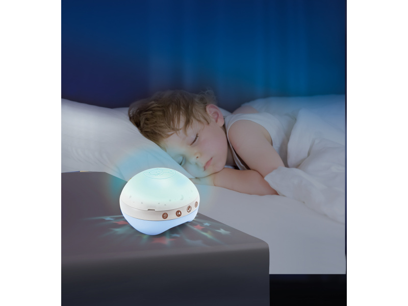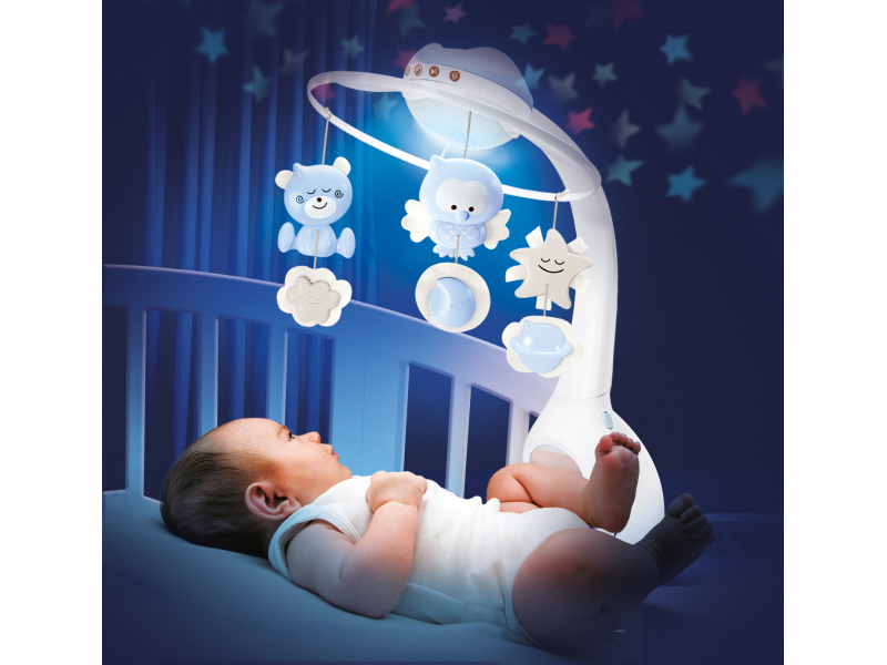 Hudební kolotoč pro snadné usínání i zabavení dítěte nabízí 3 možnosti použití: hudební kolotoč pro děti od narození do 5 měsíců noční světýlko a projektor do postýlky pro děti od 6 do 18 měsíců noční světýlko a projektor na noční stolek pro děti od 18 měsíců Světelný projektor promítá na stěnu či strop hvězdičky a jemně tak osvítí dětský pokoj. Spolu s uklidňující melodií pomůže vašemu dítěti v klidu usínat. Nabízí na výběr z deseti uklidňujících melodií a zvuků přírody. Baterie 3xAAA baterie nejsou součástí výrobku. Vhodné pro děti od narození.