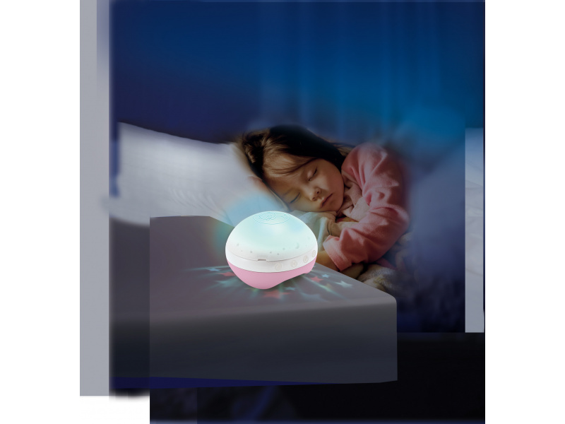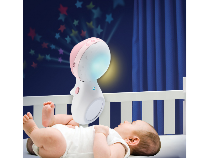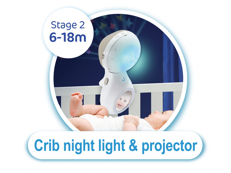 Hudební kolotoč pro snadné usínání i zabavení dítěte nabízí 3 možnosti použití: hudební kolotoč pro děti od narození do 5 měsíců noční světýlko a projektor do postýlky pro děti od 6 do 18 měsíců noční světýlko a projektor na noční stolek pro děti od 18 měsíců Světelný projektor promítá na stěnu či strop hvězdičky a jemně tak osvítí dětský pokoj. Spolu s uklidňující melodií pomůže vašemu dítěti v klidu usínat. Nabízí na výběr z deseti uklidňujících melodií a zvuků přírody. Baterie 3xAAA baterie nejsou součástí výrobku. Vhodné pro děti od narození.