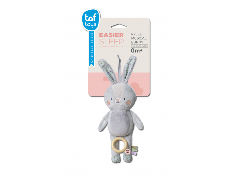 Závěsná hračka v podobě něžného králíčka Rylee s natahovacím hudebním boxem zabaví i uklidní vaše miminko doma i na cestách. Hudba se aktivuje zatáhnutím za dřevěný kroužek, dítě si tak může hudbu samo pouštět a učit se příčině a následku. Hračka hraje klasickou ukolébavku Johannesse Brahmse. Kompaktní a lehkou hračku snadno přibalíte s sebou na procházky i výlety. Poutko se suchým zipem umožňuje rychlé připevnění na kočárek, autosedačku či postýlku. Vhodné pro děti od narození.