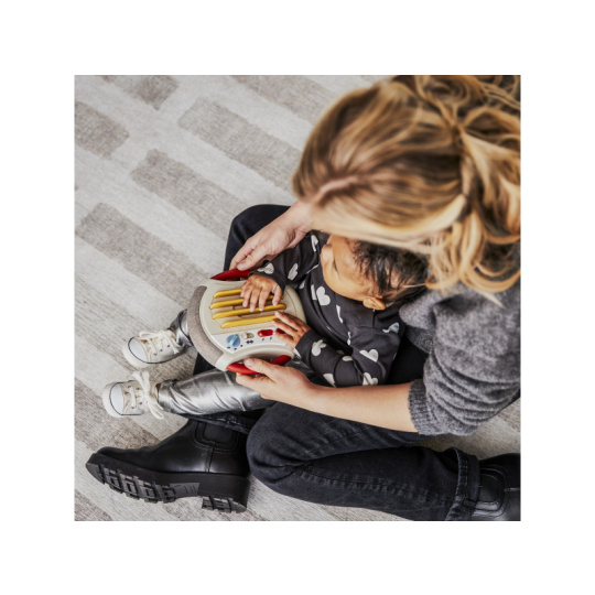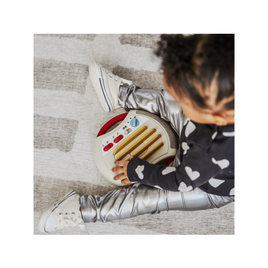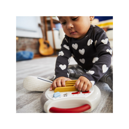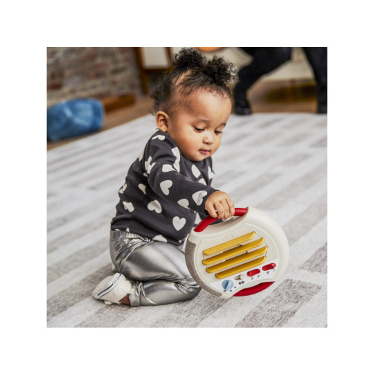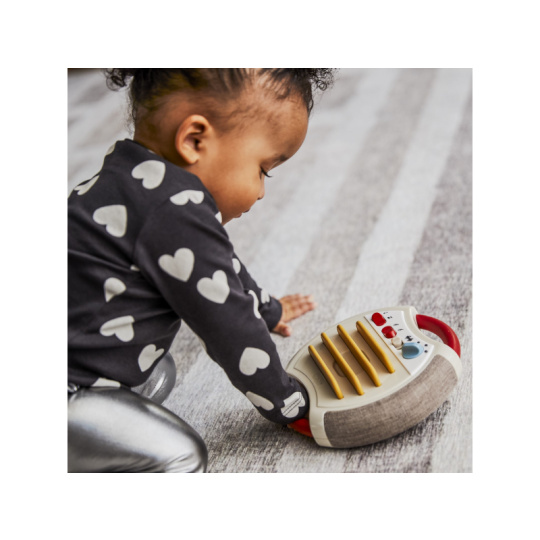 Hudební kytara Tiny Love je poutavá hračka, která zábavným způsobem pomáhá rozvíjet emoce a kreativitu vašeho dítěte. Hračka nabízí 8 rockových melodií a umožňuje dítěti poslouchat hudbu nebo ji použít jako hudbu na pozadí pro vlastní muzicírování. Každá ze 4 strun napodobuje zvuk strun kytary, navíc lze přepínat mezi klasickými nebo elektronickými zvuky. Pomocí posuvníku výšky můžete vytvářet zvukové efekty. Kytara s kvalitním reproduktorem je vybavena možností vypnutí a nabízí 3 úrovně hlasitosti. Hudební kytara je vhodná pro samostatnou hru ale i pro hraní rodičů s dítětem. Společné hraní na kytaru, zpívání a tancování je je skvělý způsob, jak si užít vzácný čas s vaším dítětem! Díky kompaktním rozměrům a držadlům je hračka vhodná na doma i na cesty. Baterie 2xAA nejsou součástí výrobku. Rozměry: 18 x 18 x 6 cm Vhodné pro děti od 12 měsíců.