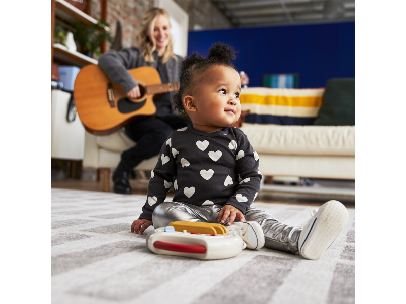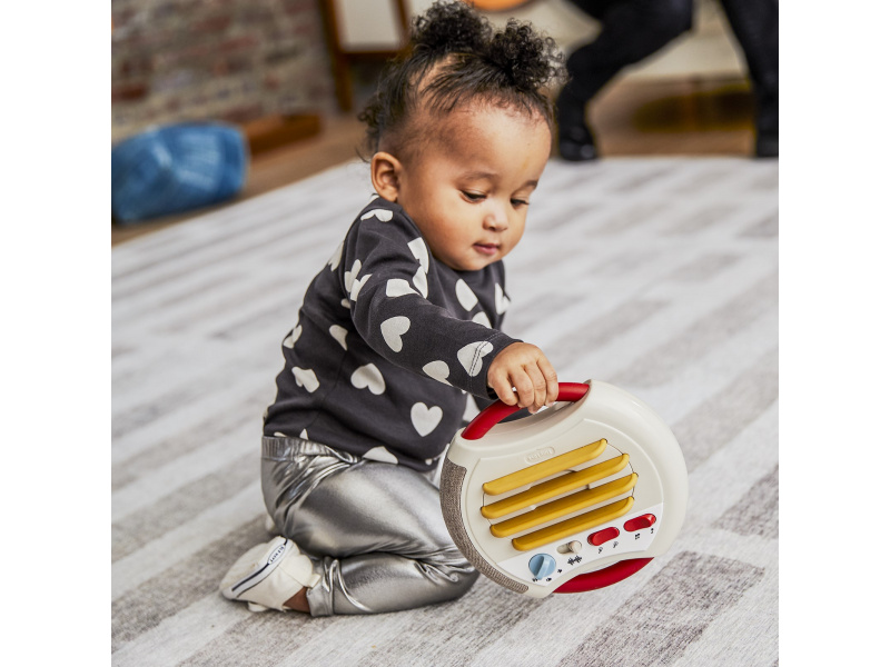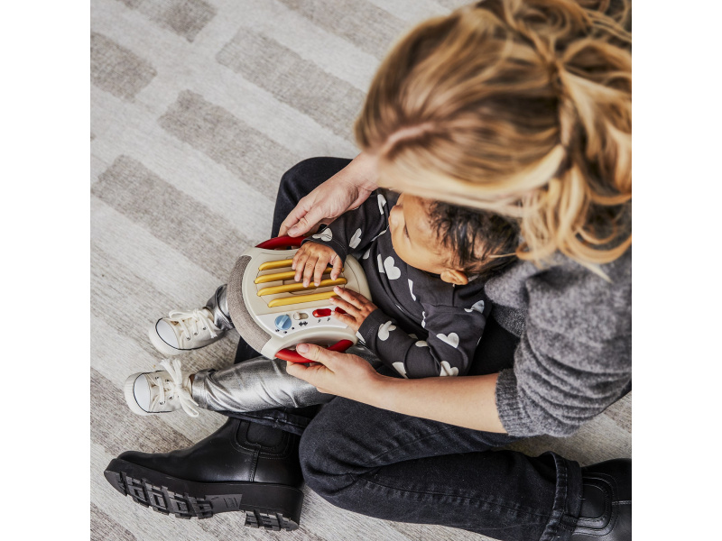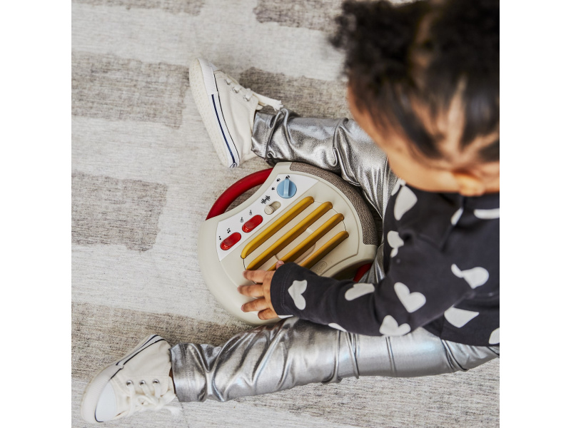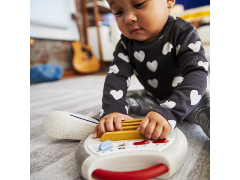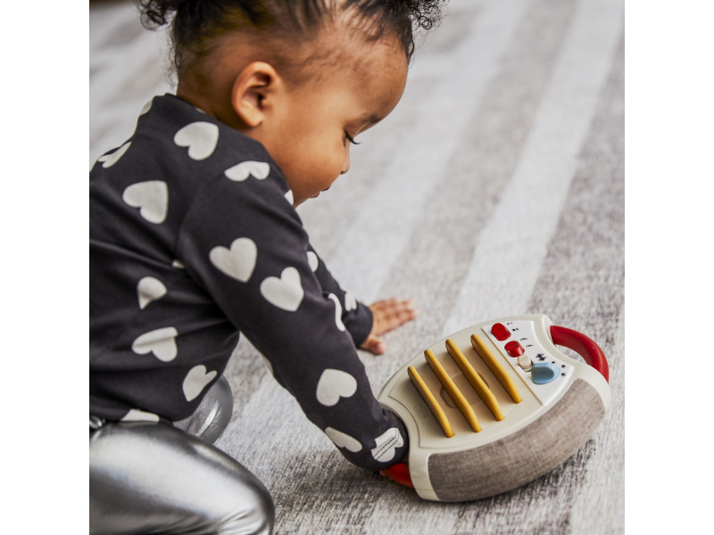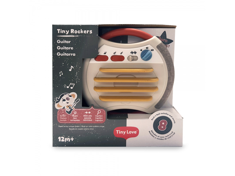 Hudební kytara Tiny Love je poutavá hračka, která zábavným způsobem pomáhá rozvíjet emoce a kreativitu vašeho dítěte. Hračka nabízí 8 rockových melodií a umožňuje dítěti poslouchat hudbu nebo ji použít jako hudbu na pozadí pro vlastní muzicírování. Každá ze 4 strun napodobuje zvuk strun kytary, navíc lze přepínat mezi klasickými nebo elektronickými zvuky. Pomocí posuvníku výšky můžete vytvářet zvukové efekty. Kytara s kvalitním reproduktorem je vybavena možností vypnutí a nabízí 3 úrovně hlasitosti. Hudební kytara je vhodná pro samostatnou hru ale i pro hraní rodičů s dítětem. Společné hraní na kytaru, zpívání a tancování je je skvělý způsob, jak si užít vzácný čas s vaším dítětem! Díky kompaktním rozměrům a držadlům je hračka vhodná na doma i na cesty. Baterie 2xAA nejsou součástí výrobku. Rozměry: 18 x 18 x 6 cm Vhodné pro děti od 12 měsíců.