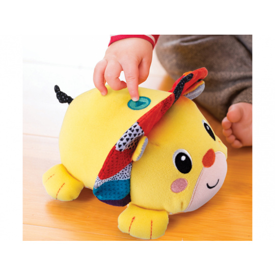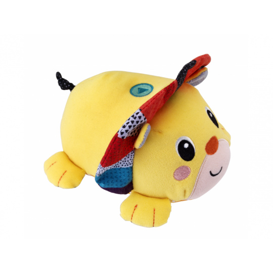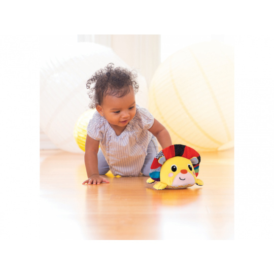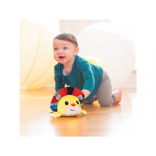 Měkká plyšová hračka v podobě lva s barevnou šusticí hřívou po zmáčknutí hraje melodii. Baterie 2xAA (LR6) 1,5V jsou součástí. Vhodné pro děti od 3 měsíců.