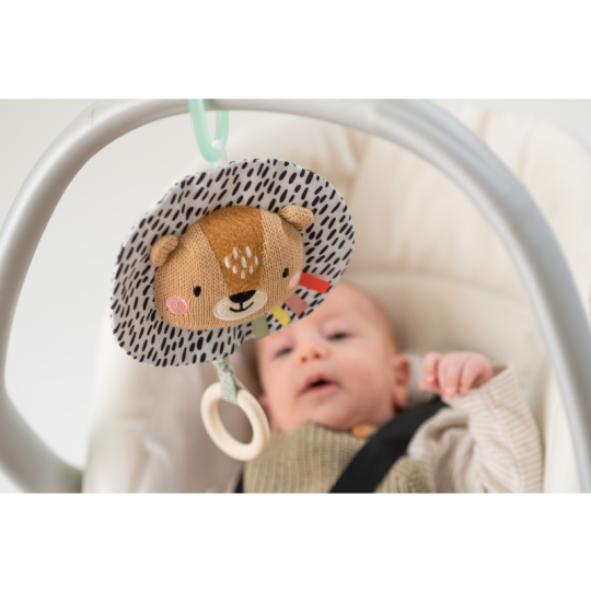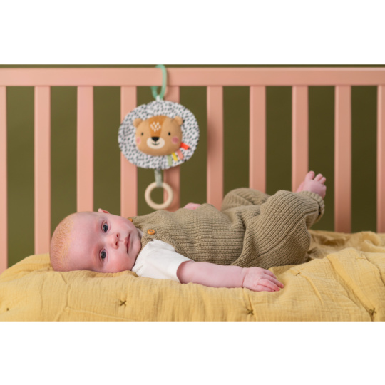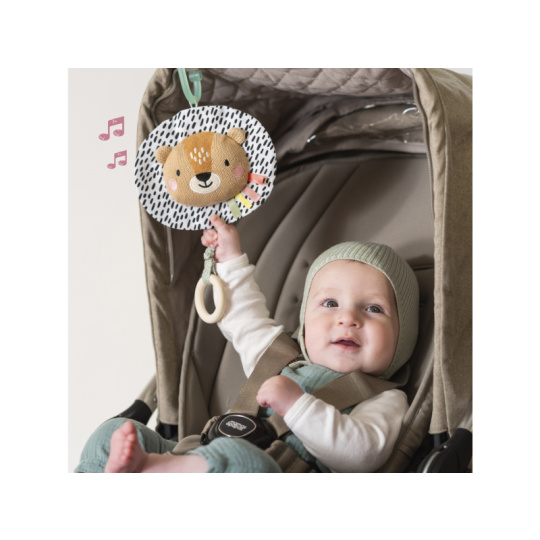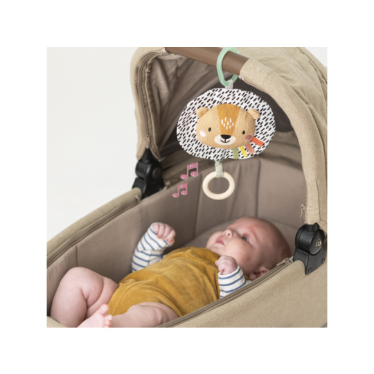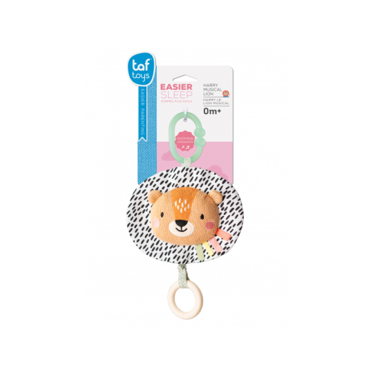 Závěsná hračka v podobě roztomilého lva Harryho s natahovacím hudebním boxem zabaví i uklidní vaše miminko doma i na cestách. Hudba se aktivuje zatáhnutím za dřevěný kroužek, dítě si tak může hudbu samo pouštět a učit se příčině a následku. Hračka hraje klasickou ukolébavku Johannesse Brahmse. Kompaktní a lehkou hračku snadno přibalíte s sebou na procházky i výlety. Praktický plastový klip umožňuje rychlé připevnění na kočárek, autosedačku či postýlku. Vhodné pro děti od narození.