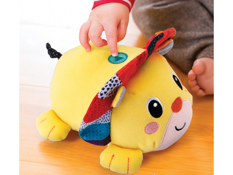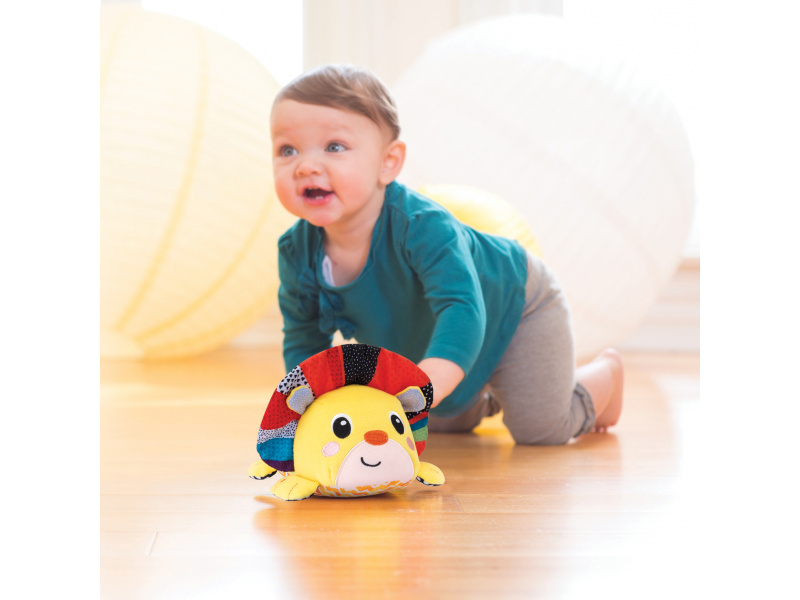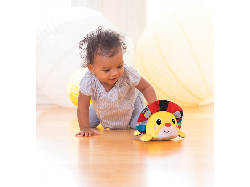 Měkká plyšová hračka v podobě lva s barevnou šusticí hřívou po zmáčknutí hraje melodii. Baterie 2xAA (LR6) 1,5V jsou součástí. Vhodné pro děti od 3 měsíců.