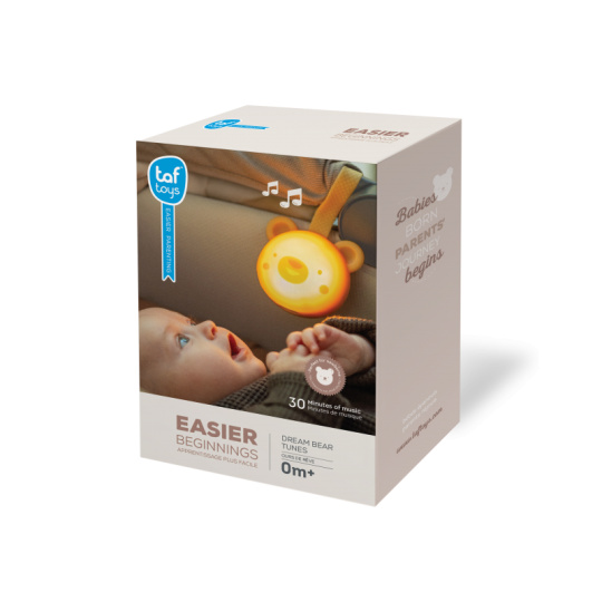 Roztomilý silikonový medvídek Taf Toys nabízí tři funkce v jednom – jemné noční světlo, uklidňující melodie a chytrý senzor pláče pro automatické utišení miminka. Pomáhá vytvořit klidné prostředí pro spánek, odpočinek i cestování a stane se nenahraditelným pomocníkem v každodenní péči o dítě. Je perfektní volbou pro novorozence i batolata a využijete jej doma v postýlce, na procházkách v kočárku i na dovolené či víkendu mimo domov. Medvídek z měkkého silikonu působí příjemně, uklidňujícím dojmem a krásně zapadne do jakéhokoli dětského prostoru Díky praktickému popruhu medvíka snadno připevníte k postýlce, kočárku nebo autosedačce Měkké tlumené světlo se třemi úrovněmi jasu 30 minut uklidňujících melodií a zvuků (2 melodie a 6 zvuků - bílý šum, „ššš“, proud vody, oceán, tlukot srdce, ventilátor) Chytrý senzor, který reaguje na pláč miminka - medvídek automaticky spustí zvolené uklidňující zvuky a pomůže dítě znovu uklidnit Snadné používání a přehledné ovládání dvěma tlačítky Nabíjení přes USB-C kabel (součástí balení) Bezpečný a testovaný výrobek Vývojové benefity Emoční jistota - jemné světlo a uklidňující melodie pomáhají miminku cítit se bezpečně Podpora spánkové rutiny - pravidelné zvukové a světelné podněty podporují zdravé spánkové návyky Rozvoj smyslů - světlo a zvuky stimulují zrak a sluch v raném vývoji Nácvik samostatného uklidnění - senzor pláče pomáhá miminku uklidnit se bez okamžité pomoci rodiče Vhodné pro děti od narození.