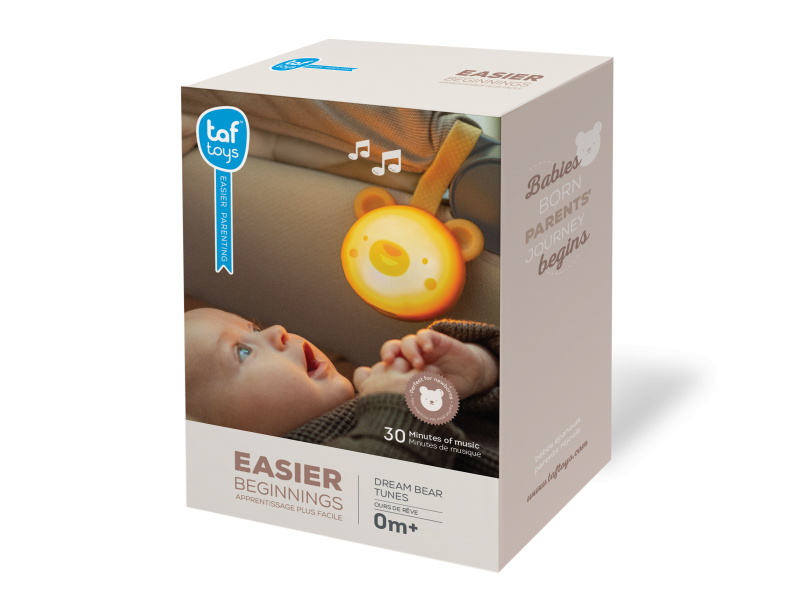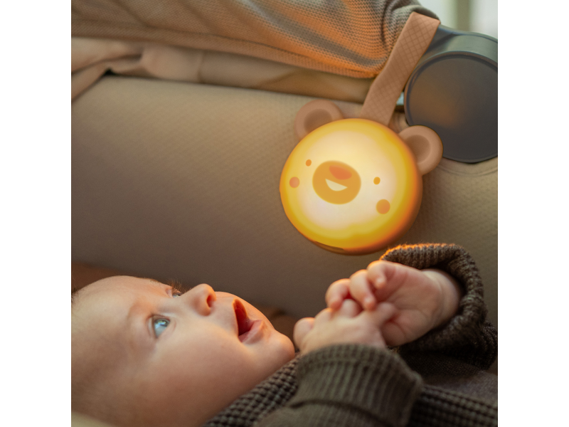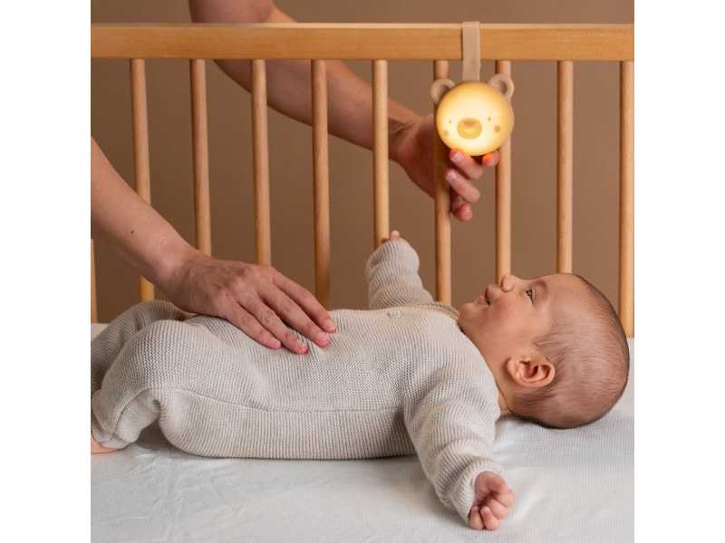 Roztomilý silikonový medvídek Taf Toys nabízí tři funkce v jednom – jemné noční světlo, uklidňující melodie a chytrý senzor pláče pro automatické utišení miminka. Pomáhá vytvořit klidné prostředí pro spánek, odpočinek i cestování a stane se nenahraditelným pomocníkem v každodenní péči o dítě. Je perfektní volbou pro novorozence i batolata a využijete jej doma v postýlce, na procházkách v kočárku i na dovolené či víkendu mimo domov. Medvídek z měkkého silikonu působí příjemně, uklidňujícím dojmem a krásně zapadne do jakéhokoli dětského prostoru Díky praktickému popruhu medvíka snadno připevníte k postýlce, kočárku nebo autosedačce Měkké tlumené světlo se třemi úrovněmi jasu 30 minut uklidňujících melodií a zvuků (2 melodie a 6 zvuků - bílý šum, „ššš“, proud vody, oceán, tlukot srdce, ventilátor) Chytrý senzor, který reaguje na pláč miminka - medvídek automaticky spustí zvolené uklidňující zvuky a pomůže dítě znovu uklidnit Snadné používání a přehledné ovládání dvěma tlačítky Nabíjení přes USB-C kabel (součástí balení) Bezpečný a testovaný výrobek Vývojové benefity Emoční jistota - jemné světlo a uklidňující melodie pomáhají miminku cítit se bezpečně Podpora spánkové rutiny - pravidelné zvukové a světelné podněty podporují zdravé spánkové návyky Rozvoj smyslů - světlo a zvuky stimulují zrak a sluch v raném vývoji Nácvik samostatného uklidnění - senzor pláče pomáhá miminku uklidnit se bez okamžité pomoci rodiče Vhodné pro děti od narození.