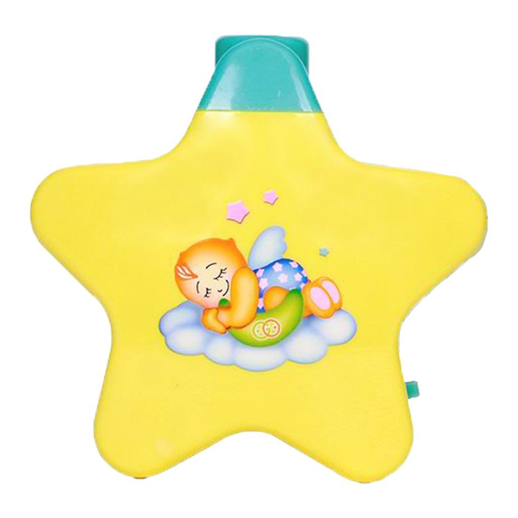 Hudební projektor pro miminka. Projektor ve tvaru hvězdičky promítá na strop krásné obrázky hvězdiček a medvídka a hraje 3 ukolébavky. Na hvězdičce je tlačítko pro vypnutí a zapnutí ON/OFF. Poloha tlačítka ON má dvě možnosti, které určují hlasitost melodií. Projektor má samostatné tlačítko, kterým se zapíná hudba a samostatné tlačítko, kterým se zapínají pohyblivé obrázky. Vyrobeno z kvalitního plastu. Určeno pro děti od narození. Baterie jsou součástí balení. Rozměry cca 15x15 cm.