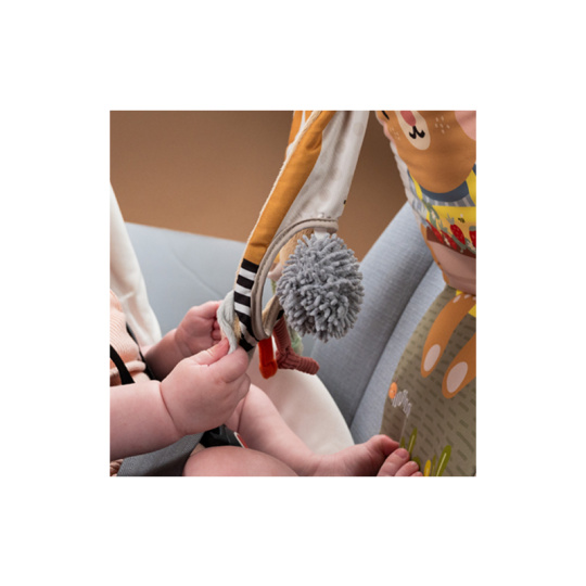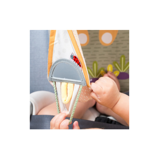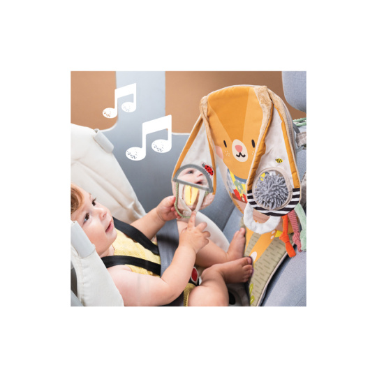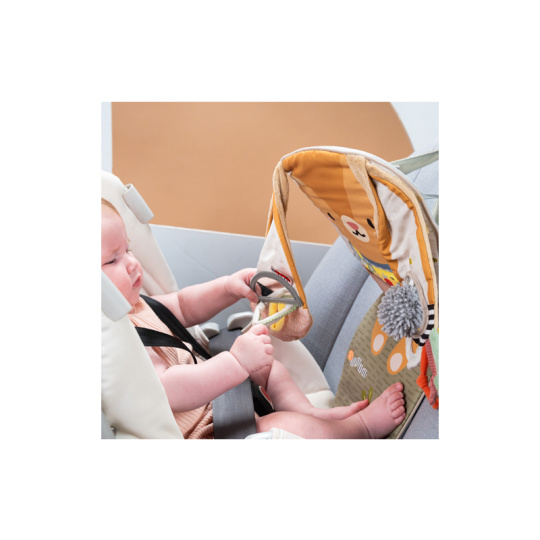 Hrací pultík do auta Taf Toys s hudbou a světélky zabaví vaše miminko na cestách autem a zajistí vám klid při řízení. Pultík se připevňuje na sedadlo nad autosedačku proti směru jízdy. Hudbu i světýlka dítě aktivuje kopáním svých nožiček do spodní části pultíku. Dítě se tak učí příčině a následku a rozvíjí své motorické dovednosti. Různorodé aktivity a textury včetně bezpečného zrcátka lákají ke zkoumání a podněcují rozvoj smyslů dítěte. Pultík snadno připevníte s pomocí plastových kroužků na opěrku hlavy na sedadle před dítětem. Baterie 3xAG13 (LR44) jsou součástí. Vhodné od narození.