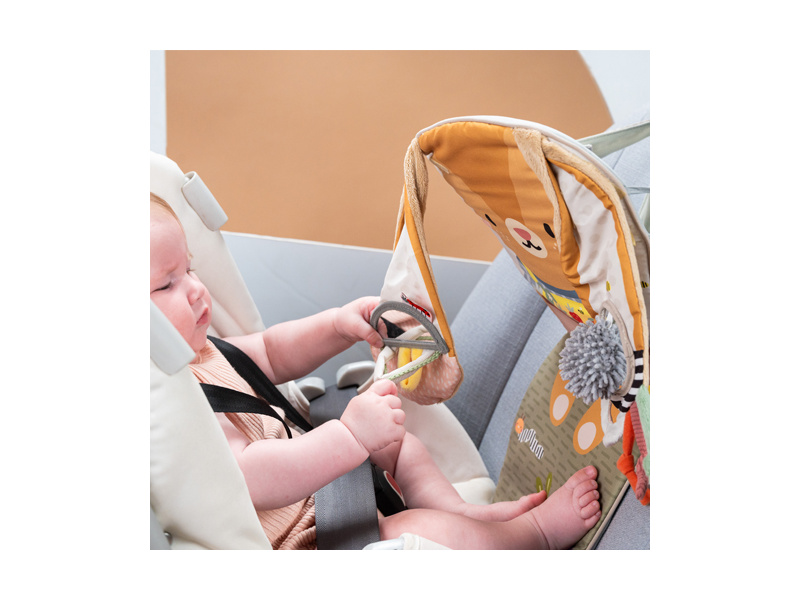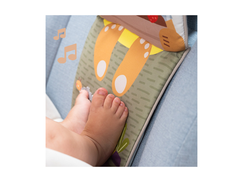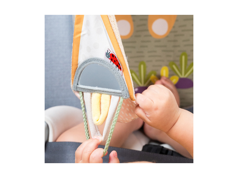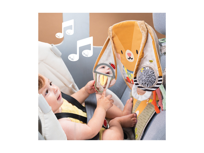 Hrací pultík do auta Taf Toys s hudbou a světélky zabaví vaše miminko na cestách autem a zajistí vám klid při řízení. Pultík se připevňuje na sedadlo nad autosedačku proti směru jízdy. Hudbu i světýlka dítě aktivuje kopáním svých nožiček do spodní části pultíku. Dítě se tak učí příčině a následku a rozvíjí své motorické dovednosti. Různorodé aktivity a textury včetně bezpečného zrcátka lákají ke zkoumání a podněcují rozvoj smyslů dítěte. Pultík snadno připevníte s pomocí plastových kroužků na opěrku hlavy na sedadle před dítětem. Baterie 3xAG13 (LR44) jsou součástí. Vhodné od narození.