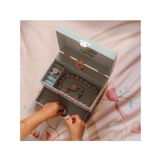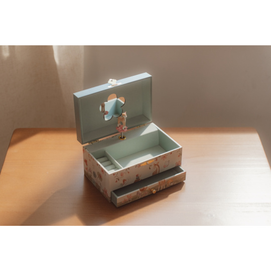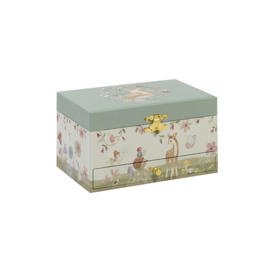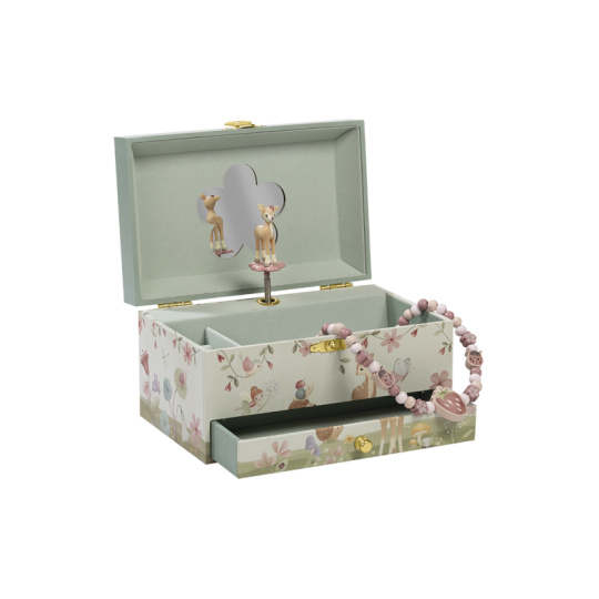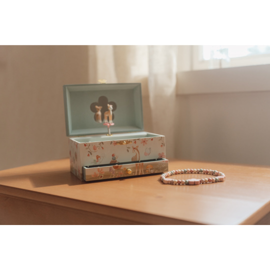 Krásná šperkovnice se zrcátkem a hudebním boxem, který po natažení hraje něžnou melodii. Vaše malá parádnice si do šperkovnice s potiskem motivů ze života v lese může ukládat své šperky a jiné vzácné drobnosti. Šperkovnice je součástí designové kolekce hraček a doplňků Little Dutch Forest Friends inspirované životem v lese. Rozměry: 10 x 10,4 x 18 cm Vhodné pro děti od 3 let.