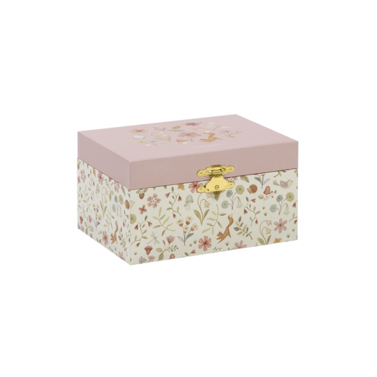 Krásná šperkovnice se zrcátkem a hudebním boxem, který po natažení hraje něžnou melodii. Vaše malá parádnice si do šperkovnice s potiskem květin může ukládat své šperky a jiné vzácné drobnosti. Šperkovnice je součástí designové kolekce hraček a doplňků Little Dutch Fairy Garden inspirované životem na zahradě. Rozměry: 8,5 x 11,5 x 15 cm Vhodné pro děti od 3 let.