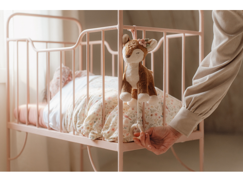 Závěsná hračka v podobě něžné srnky v sobě skrývá natahovací hudební box s příjemnou ukolébavkou, která vaše miminko uklidní a pomůže mu usnout. Hračku snadno připevníte k postýlce či komodě. Hračka je součástí designové kolekce hraček a doplňků Little Dutch Fairy Garden inspirované životem na zahradě. Rozměry: 19 x 18 x 10 cm Vhodné pro děti od narození.