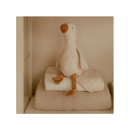 Jemná plyšová hračka v podobě roztomilé husy je ideální jako mazlík do postýlky pro lepší usínání vašeho dítěte. Husa umí sedět a může se tak stát i krásnou dekorací v dětském pokojit. Hračka je součástí designové kolekce hraček a doplňků Little Dutch Newborn Naturals. Výška: 25 cm Složení: 100% polyester Výplň je vyrobena ze 100% recyklovaného polyesteru s certifikací GRS (Global Recycled Standard). Možno prát v pračce na jemný program při 30°C. Vhodné pro děti od narození.