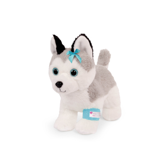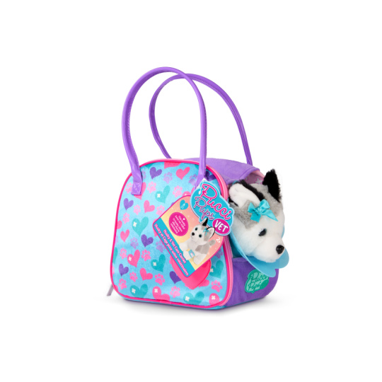 Roztomilé štěně huskyho v kabelce s krásným potiskem je vždy připravené na mazlení i na procházku. Díky kabelce si jej vaše dítě může vzít kamkoli. Kabelka má okénko v přední části, aby štěňátko při přenášení vidělo na svět. Uvnitř najdete i sadu veteriářských nástrojů a doplňků pro vyšetření i léčení štěňátka! Obsah balení: kabelka, plyšové štěně, 6 veterinářských doplňků Rozměry: cca 24 x 15 x 24 cm Vhodné pro děti od 3 let.
