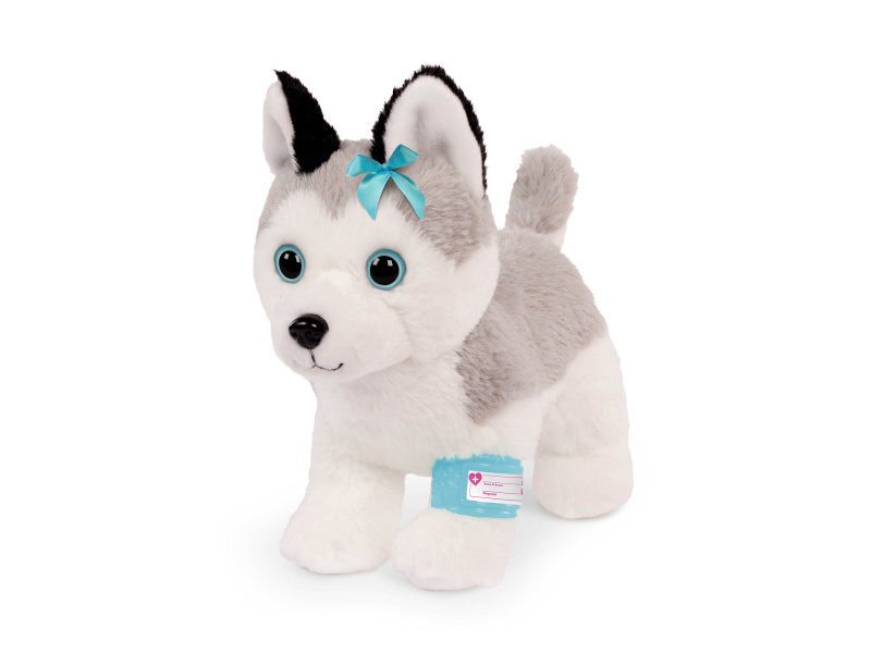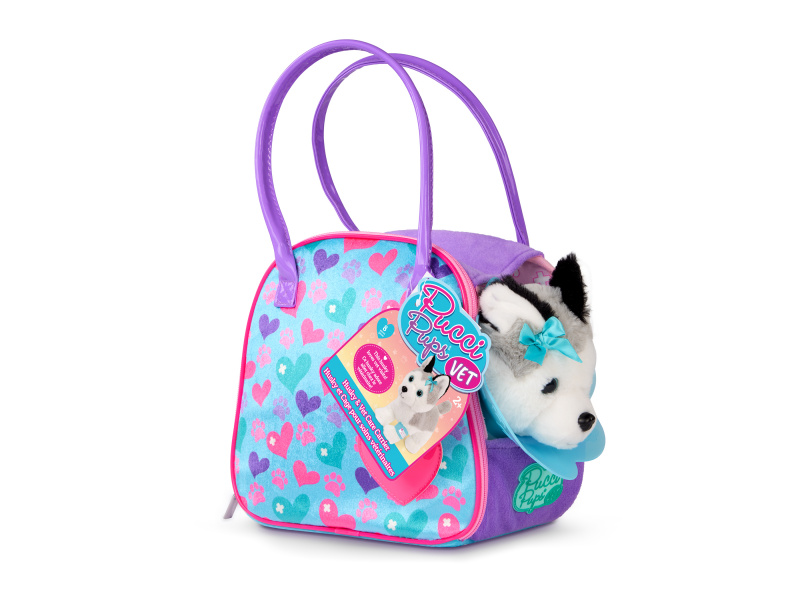 Roztomilé štěně huskyho v kabelce s krásným potiskem je vždy připravené na mazlení i na procházku. Díky kabelce si jej vaše dítě může vzít kamkoli. Kabelka má okénko v přední části, aby štěňátko při přenášení vidělo na svět. Uvnitř najdete i sadu veteriářských nástrojů a doplňků pro vyšetření i léčení štěňátka! Obsah balení: kabelka, plyšové štěně, 6 veterinářských doplňků Rozměry: cca 24 x 15 x 24 cm Vhodné pro děti od 3 let.