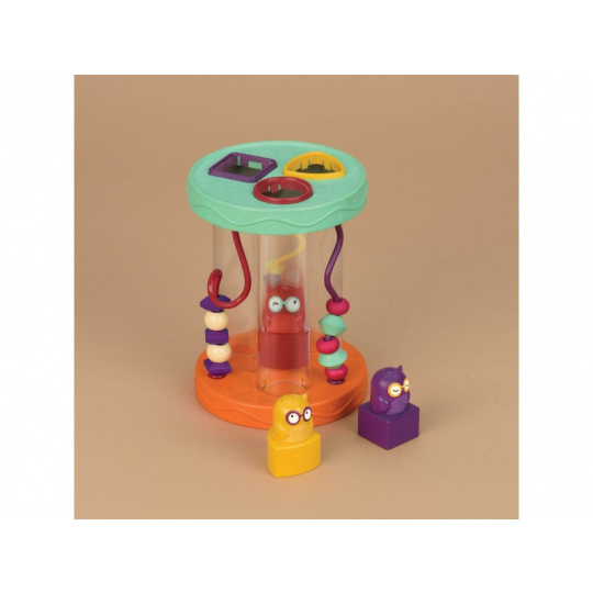 Multifunkční hračka s houkajícími sovičkami. Tři sovičky se základnou různých tvarů po vložení správného otvoru kloužou dolů a houkají. Hračku je možné položit na zem a kutálet jako válec. Rozměry: výška 21 cm, průměr válce 15 cm. Vhodné pro děti od 6 měsíců do 3 let.