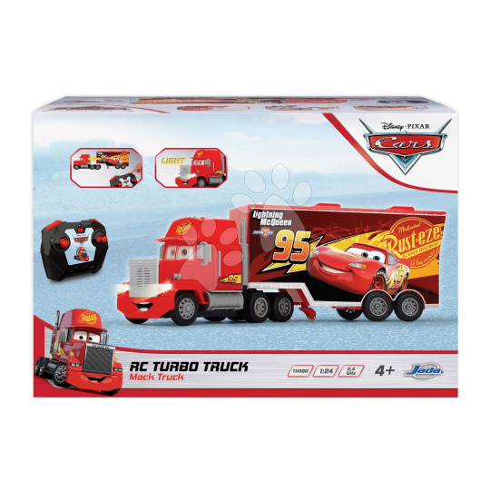 Autíčko s přívěsem na dálkové ovládání Turbo Mack Truck ve stylovém červeném provedení představuje originální dárek pro děti od 4 let. Kvalitní autíčko s licencí animovaného filmu Auta potěší všechny malé závodníky, je vybaveno přívěsem, který lze odpojit dálkovým ovládáním. Nákladní autíčko s funguje na 3kanálové dálkové ovládání s frekvencí 2,4 GHz s funkcí Turbo, dokáže se hýbat dopředu-dozadu a vlevo-vpravo. Autíčko je vybaveno zvukem a světlem, díky čemuž si s ním děti zahrají i potmě. Zadní dveře přívěsu se otevírají mechanicky, celková délka modelu je 46 cm.