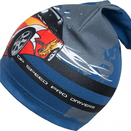 Jarní bavlněná čepička New Baby. Čepičku zdobí obrázek závodního auta. Čepička je ušitá z prodyšného materiálu, proto je vhodná pro jarní i podzimní dny. Složení: 100% bavlna. Materiál je pružný. Obvod kolem hlavičky cca 40-50 cm.