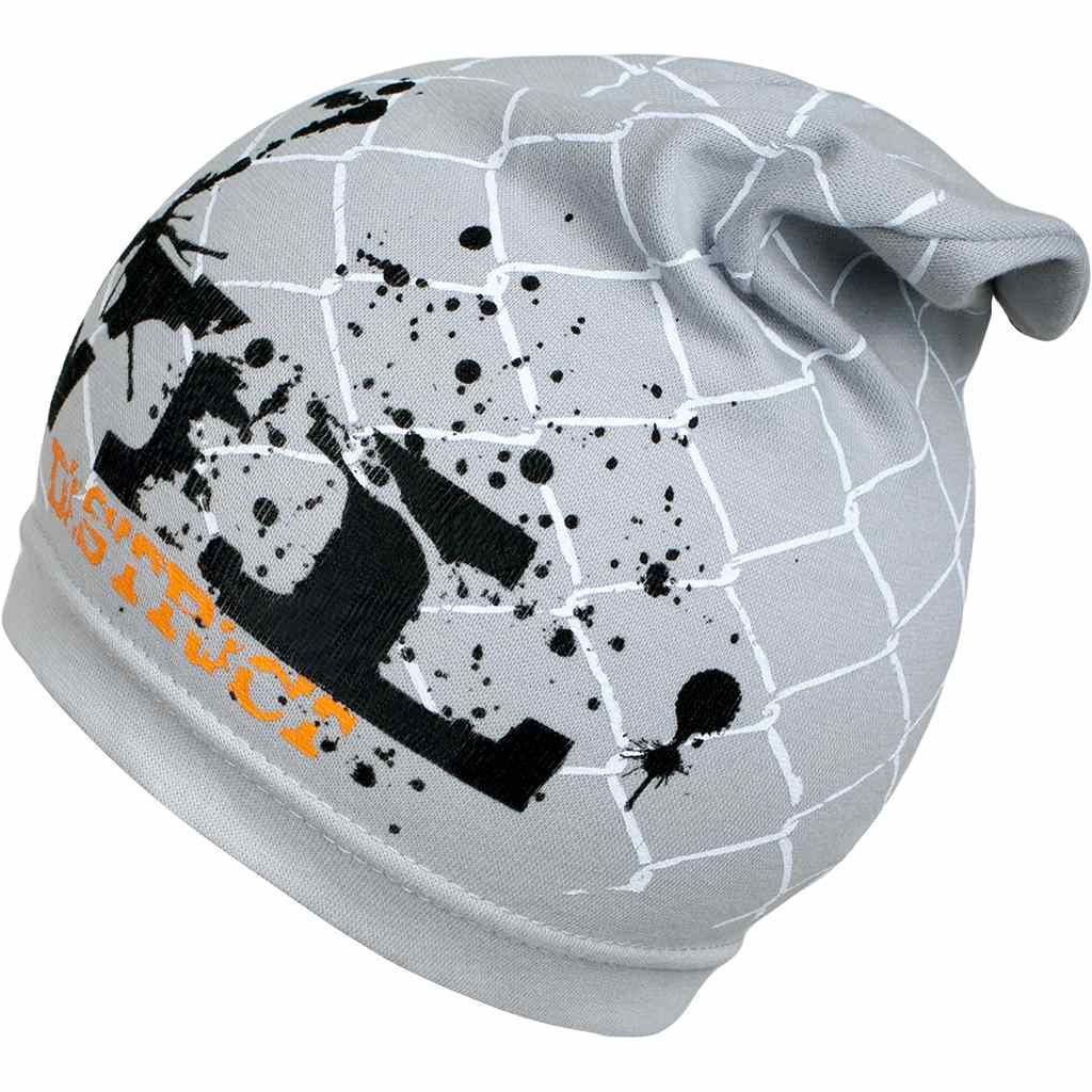 Jarní bavlněná čepička New Baby. Čepičku zdobí nápis Evil street district. Čepička je ušitá z prodyšného materiálu, proto je vhodná pro jarní i podzimní dny. Složení: 100% bavlna. Materiál je pružný. Obvod kolem hlavičky cca 40-50 cm.