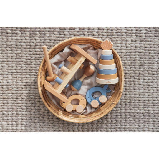 Dřevěná rybka má tvar pro snadné držení a kola pro hladkou jízdu. Hračku využijete i jako krásnou dekoraci v dětském pokoji. Rozměry: 11 x 6 x 8 cm Vhodné pro děti od 12 měsíců.