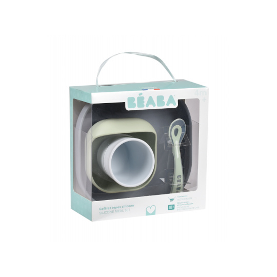 Sada talíře, misky, kelímku na pití a lžičky z vysoce kvalitního silikonu je ideální pro první samostatné krmení. Přísavka u misky a talíře umožňuje uchycení ke stolu nebo pultu jídelní židličky. Ergonomický tvar usnadňuje nabírání příkrmu. Silikonový měkký materiál je bezpečný a příjemný při používání. Je odolný vysokým i nízkým teplotám a není náchylný k vytváření skvrn od barevných potravin. Vhodné do myčky i mikrovlnné trouby. Neobsahuje BPA. Pro děti od 4 měsíců.