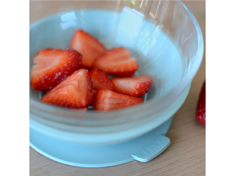 Unikátní sadu nádobí z tvrzeného skla tvoří jídelní miska, talířek a sklenička ergonomického, zaobleného tvaru s hladkými hranami. Miska a talíř jsou doplněny speciálními odnímatelnými podložkami z pružného materiálu s přísavkou, která zajišťuje stabilitu misky či talíře na stole a usnadňuje dítěti stolování. Návlek na skleničku ze stejného materiálu usnadňuje dítěti uchopení skleničky a snižuje riziko jejího vyklouznutí z ruky. Tvrzené sklo je 100% hygienický materiál odolný vůči poškrábání, nárazům a vysokým teplotám. V případě rozbití nedojde k vytvoření ostrých střepů. Sada nádobí je výsledkem spolupráce dvou francouzských značek - Beaba a Duralex. Ikonická značka Duralex je od roku 1945 průkopníkem ve výrobě tvrzeného skla. Nádobí je vyrobeno ve Francii. Nádobí bez odnímatelných podložek lze ohřívat v mikrovlnné troubě i mýt v myčce. Podložky je možné mýt ručně. Rozměry a hmotnost: Talíř: ø 17,5 cm x v 4,3 cm, 337 g Miska: ø 12 cm x v 5,3 cm, 300 ml, 243 g Sklenice: ø 7,1 cm x v 7 cm, 150 ml, 156 g Vhodné pro děti od 4 měsíců.