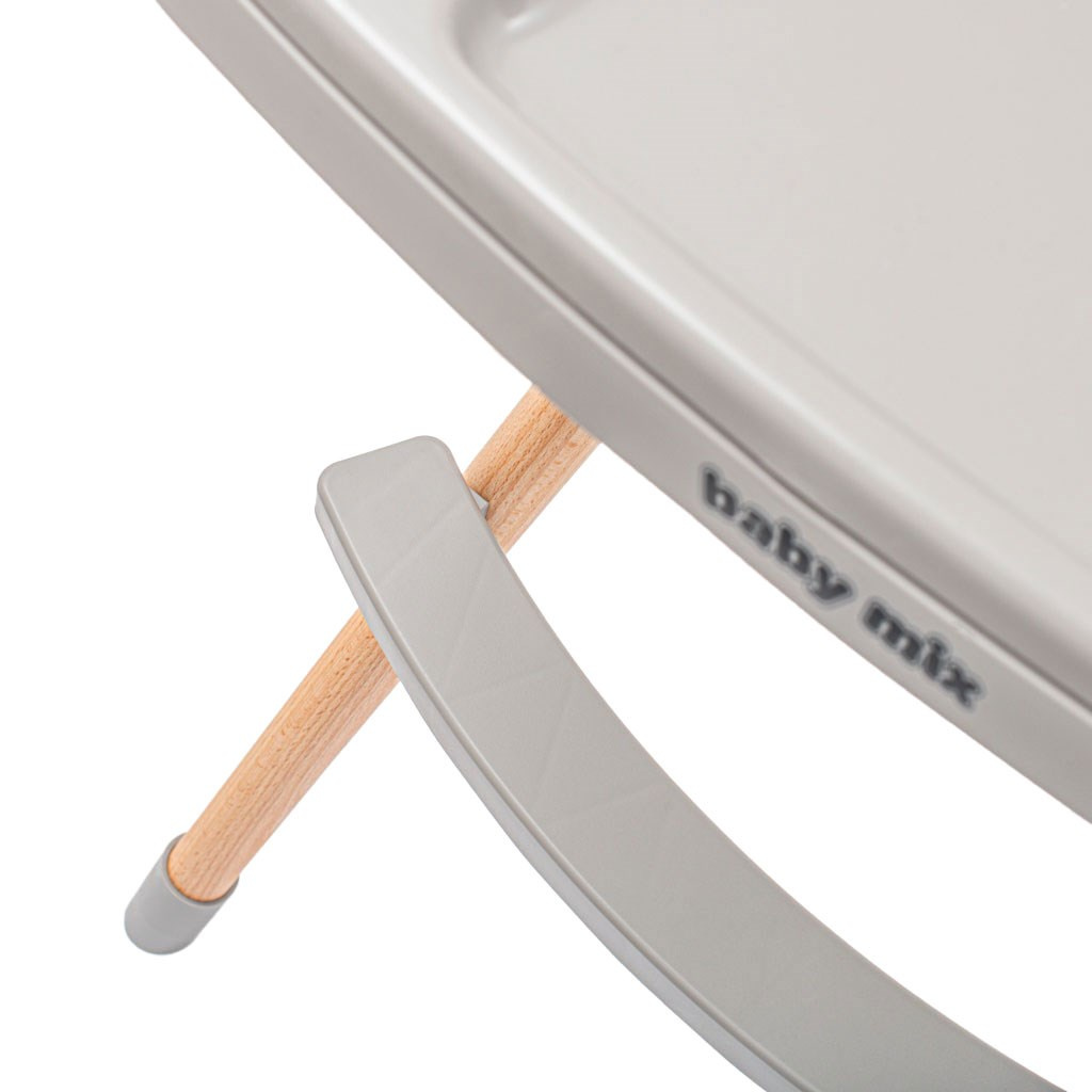 Jídelní židlička Baby Mix má všechny funkce, které usnadňují každodenní krmení: nastavitelný dvojitý tácek, 5bodové pásy, odnímatelné čalounění z eko kůže, opěrka nohou, látkový koš, protiskluzové nožičky. Židli lze snadno přeměnit na nízkou židli odstraněním spodní části nohou.Jídelní židlička Baby Mix je vhodná pro děti ve věku 6-36 měsíců.