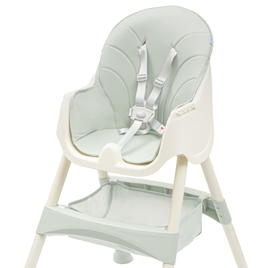 5-bodový pás zajistí Vašemu dítěti bezpečí a opěrka na nohy pohodlí. Potah lze kdykoli vyčistit vlhkým hadříkem. Židličku lze snadno přeměnit na nízkou židli odstraněním spodní části nohou. Látkový koš je dostatečně prostorný k uložení potřebných věcí, jako jsou vlhčené ubrousky, látková plena čí oblíbené drobné hračky. Protiskluzové nožky zabrání nechtěnému popojíždění židličky. Jídelní židličku Baby Mix můžete využit i jako dětskou židli.