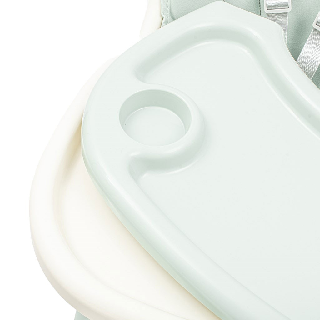 Jídelní židlička Baby Mix má všechny funkce, které usnadňují každodenní krmení: nastavitelný dvojitý tácek, 5bodové pásy, odnímatelné čalounění z eko kůže, opěrka nohou, velký látkový koš, protiskluzové nožičky.