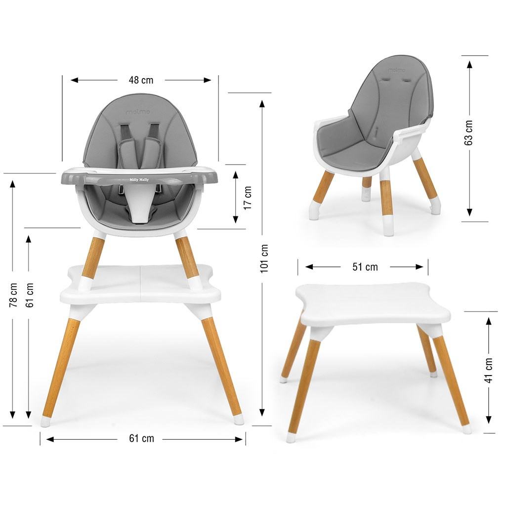 Jídelní židlička Milly Mally 2v1 Malmo grey